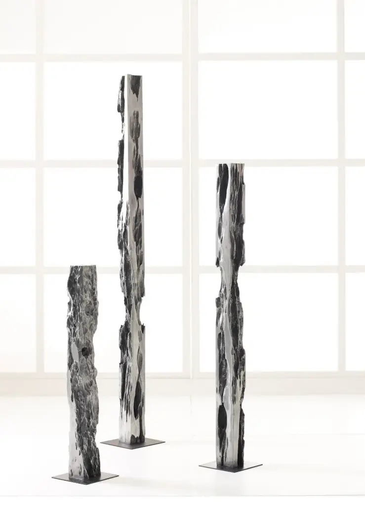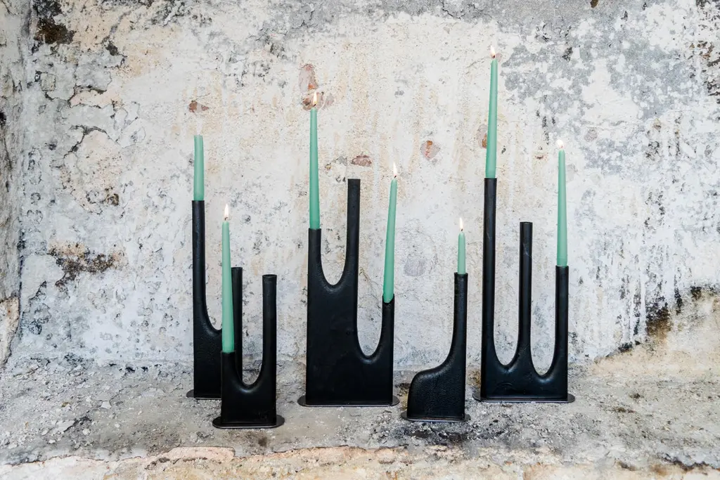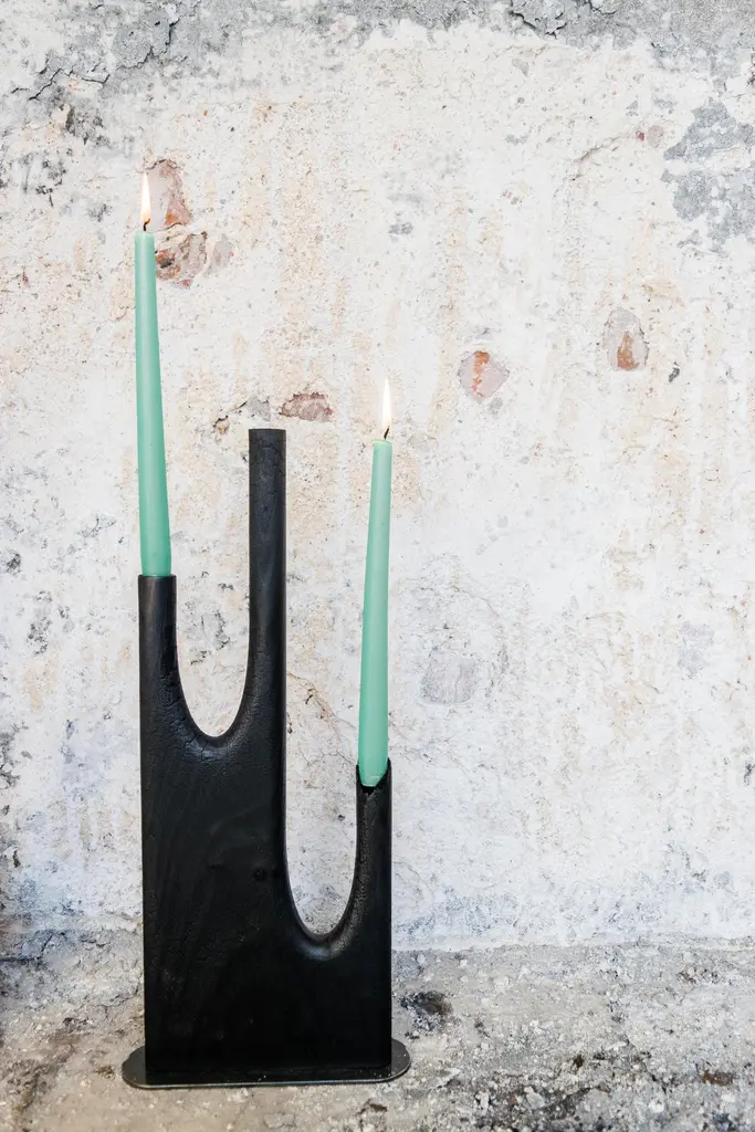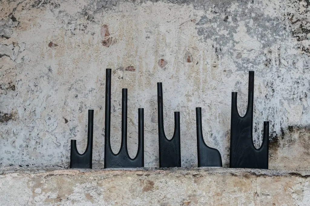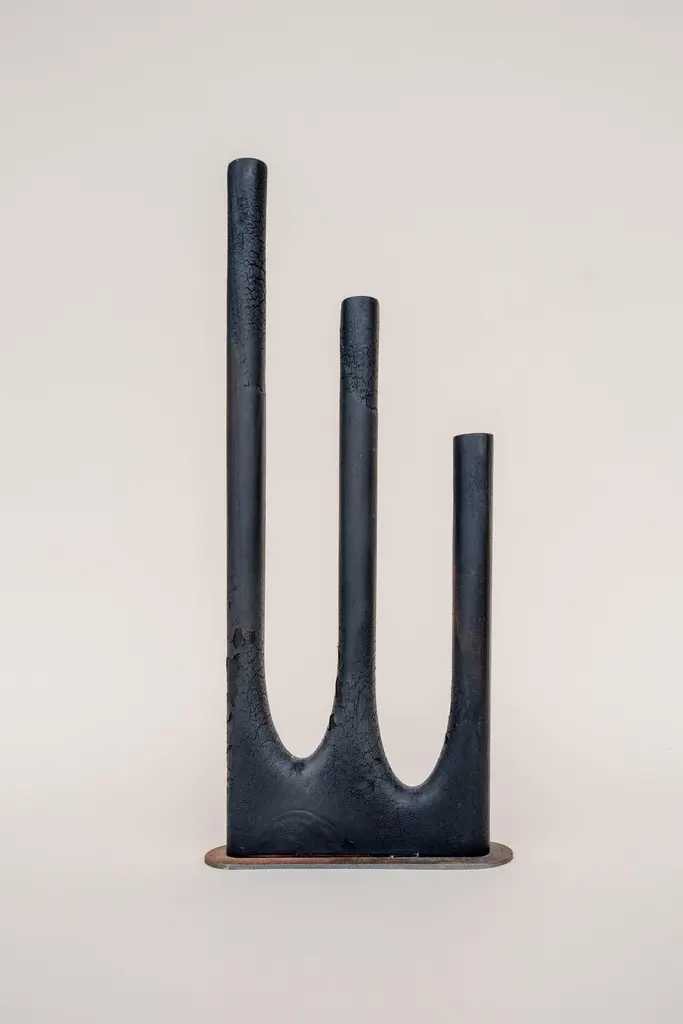 Set of Trio Vase and Dou Vase by Daniel ElkayamDimensions: D 2.5 x W 16 x H 46 cm (Trio), D 2.5 x W 10 x H 39 cm (Dou)Materials: Burnt beech woodJerusalem-born Art-designer and Photographer based in Tel-Aviv. Operating in the field of sustainable home decor and specializing in conceptual design, material exploring, and story-telling through objects. Graduated in 2019 his Bachelor's studies at the Industrial design department at Bezalel Academy of Arts and Design, Jerusalem. A former member of the Bezalel Alumni Design Incubator 2020. Won the excellent scholarship of America-Israel cultural foundation of 2019 Inspired by nature and its phenomenons, the artist transforms natural materials and aesthetics into one-of-a-kind unique objects. In his works, Daniel implements his curiosity and yearning for unrefined aesthetics, and by material transformation and unique techniques he is developing in his studio, he shows how unattractive materials can be not only valid but luxurious. Elkayam examines the range between art and design by taking things in and out of their context, creating hybrids between different worlds of content, intervening in natural processes, while leaving a gap for the unexpected, the unknown. He expresses his inner world and illustrates his ideas by creating objects and experiences. Through his perspective of materiality, and empathetic vision of his surroundings, he developed an intuitive way of creation with experimental materials such as algae, corrosion, charcoal, and more. Every collection of objects expresses different material research and follows curious narratives and a variety of topics such as locality, transience, and decay of materials. THE CHARRED COLLECTION: A collection of handmade wooden objects inspired by one of the most powerful natural phenomena in our world, which is out of control. Today the percentage of fires caused by natural causes is significantly lower than those caused by humans. The huge fires quickly deplete the forests, leaving behind a particularly surrealistic view of a burnt, black piece of nature. Out of interest in this show was created the desire to preserve the unique aesthetics of the burnt wood and to express in objects the feelings and questions it raises as a raw material in itself. The same scorched aesthetic combined with everyday objects, on the one hand, serves as a mirror for the consequences of the situation we have created and as a means of dealing with its ecological results, and on the other hand, as a visual echo of fire intensity and aesthetic effects.
