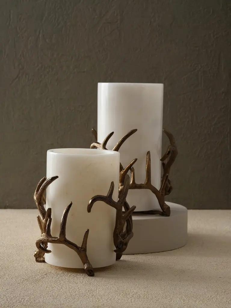 Set Of Two Antler Marble Vase – White & Gold Detail