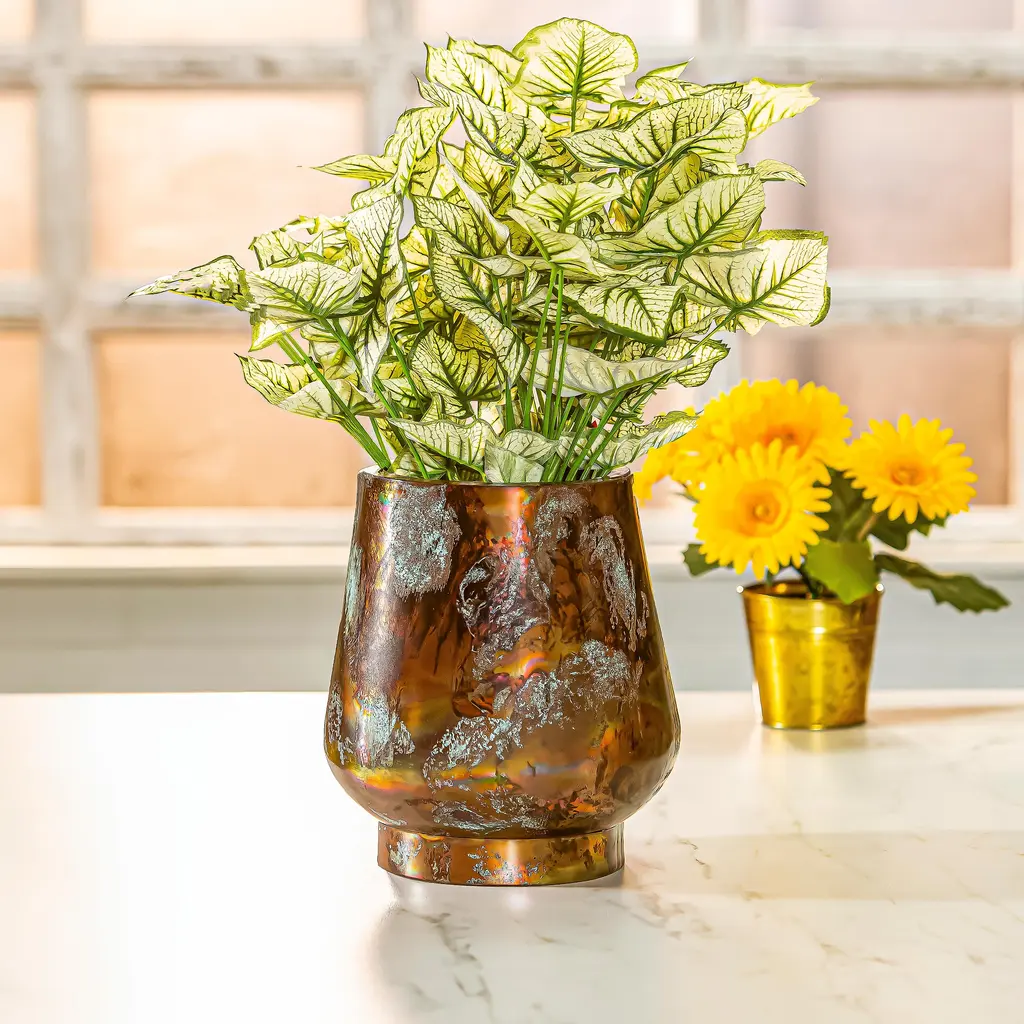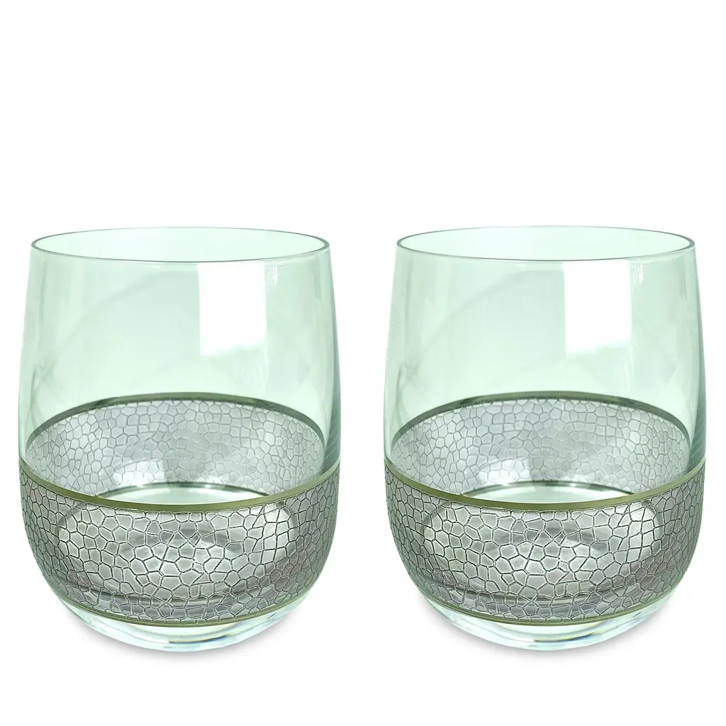 Set Of Two Gold And Black Deco Dots Glass Vases
