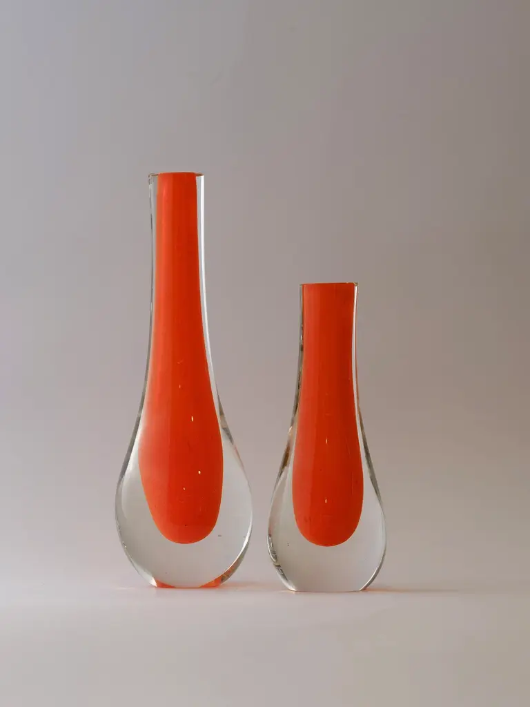 Set Of Two Murano Colored Glass Vases – Flame Teardrop Core