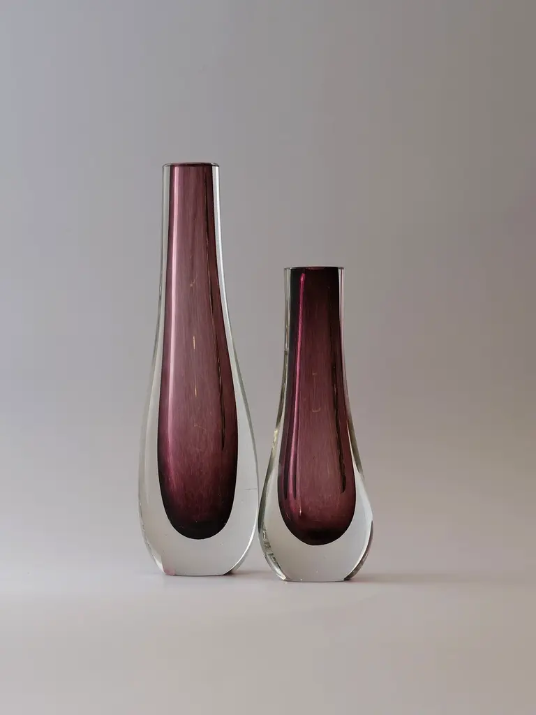 Set Of Two Murano Colored Glass Vases – Plum Teardrop Core