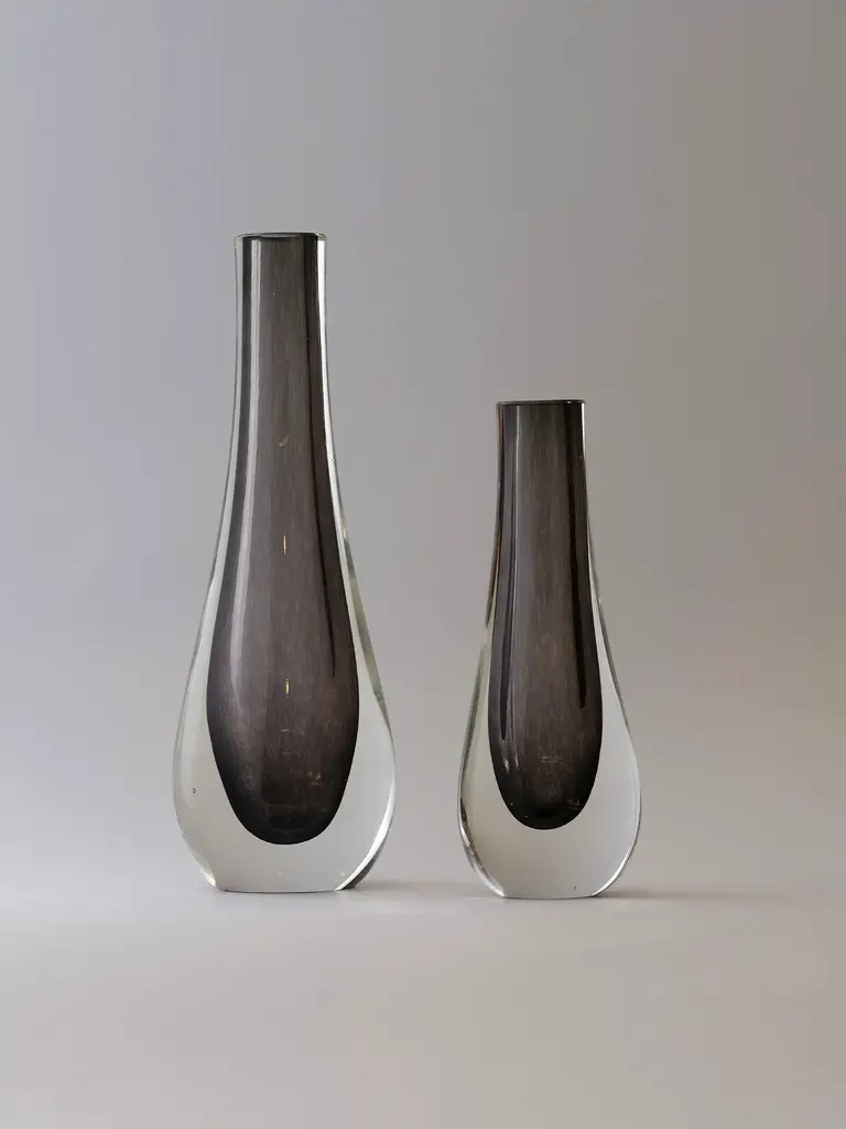 Set Of Two Murano Colored Glass Vases – Smoky Black Teardrop Core