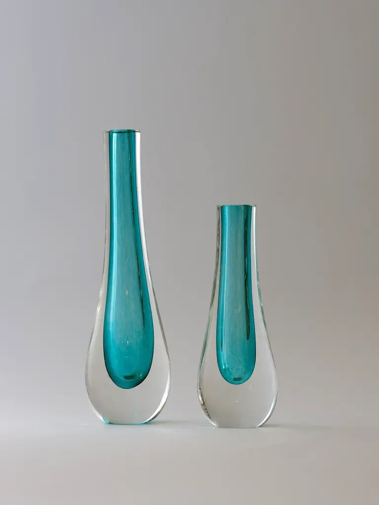 Set Of Two Murano Colored Glass Vases – Turquoise Teardrop Core