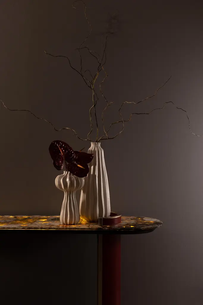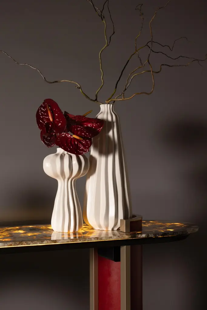 Nebula Vases, Lusitanus Home Collection, Handcrafted in Portugal - Europe by Lusitanus Home.This beautiful set includes three waterproof ceramic vases, perfect to be displayed together in endless combinations, with or without flowers.Each piece has its own elegant silhouette, featuring different shapes in off white glazed ceramic with a matte finish.Measures: Di.22 x H.50cm / Di.8,66 x H.19,7inDi.19 x H.33cm / Di.7,48 x H.12,99inDi.34 x H.19.5cm / Di.13,39 x H.7,68inSet of 3 Ceramic Vases Nebula Material CodesOff white glazed ceramic; matte finishHandcrafted in Portugal - Europe by GreenappleUnique by design, Crafted by peopleFounded in 2005 by Sérgio Rebola and Rute Martins, Greenapple designs and produces in-house luxury furniture for exclusive customers worldwide.Our own in-house production facility allows us to be obsessed with detail, and gives us the freedom to dedicate ourselves to the most demanding tailor-made and customised work. As Rute designs all the unique pieces, Sérgio assures the high-quality standards through the whole process - from design to production; from production to your home. Fine craftsmanship, whether perfected by experienced hands or state-of-the-art machinery is quintessential in delivering top quality experiences.