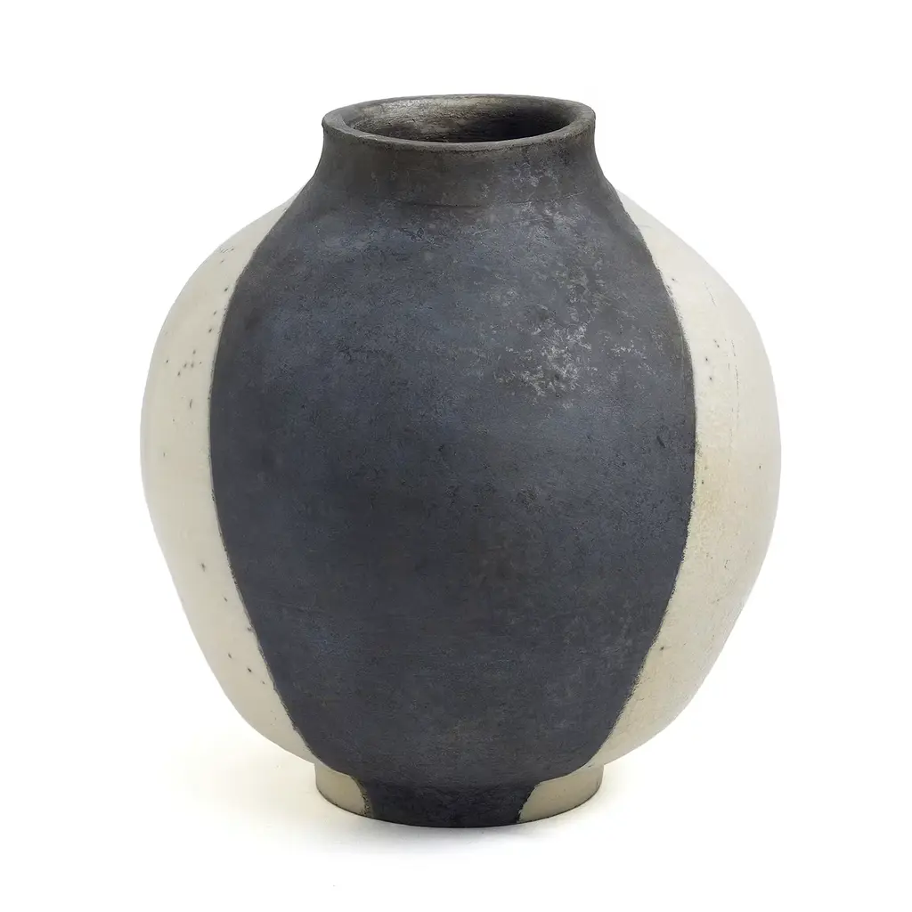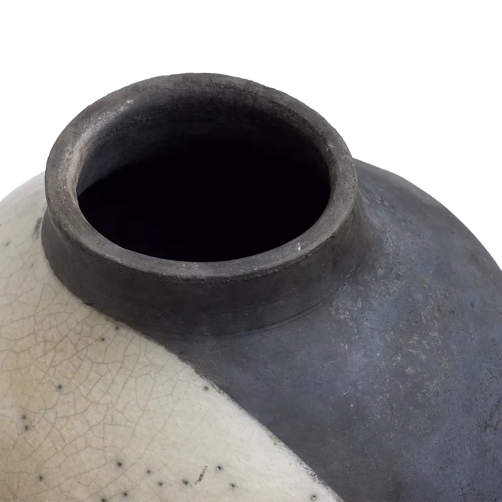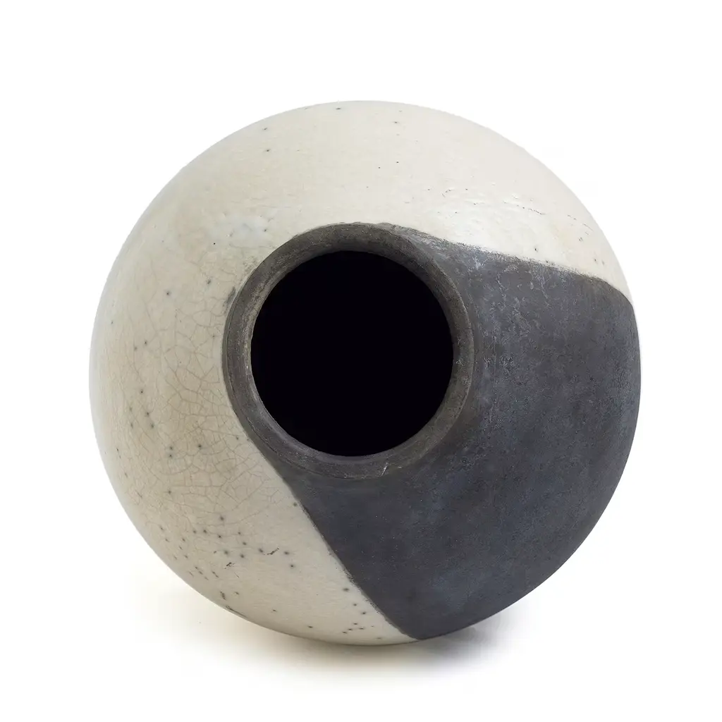 A work of harmonization of darkness and light, cold and heat: yin e yang. A stunning sculpture with black crakle' and black dots on the brighter side and tiny white scratches on the darker side, symbolizing the indivisible connection of the opposites on the same piece of art. A large sculpture that shows the artist's connection to Chinese Taoism. No side can be completely black or completely white because the absolute yin will always contain a seed of yang and is the same the other way around.