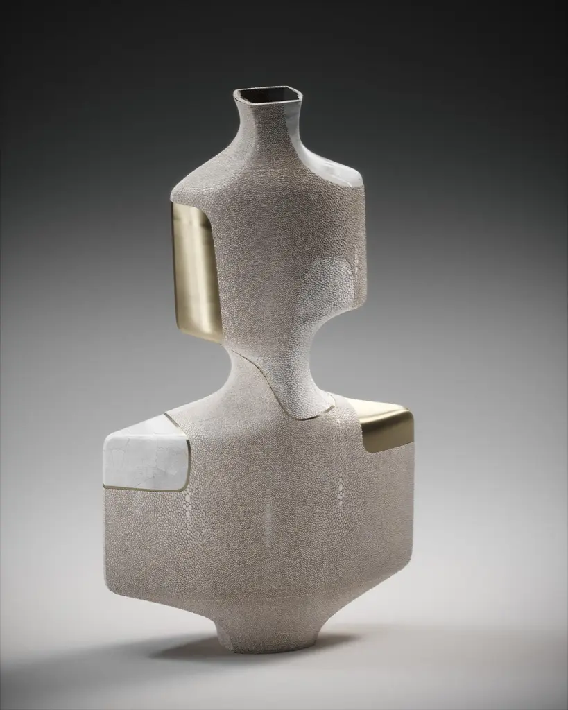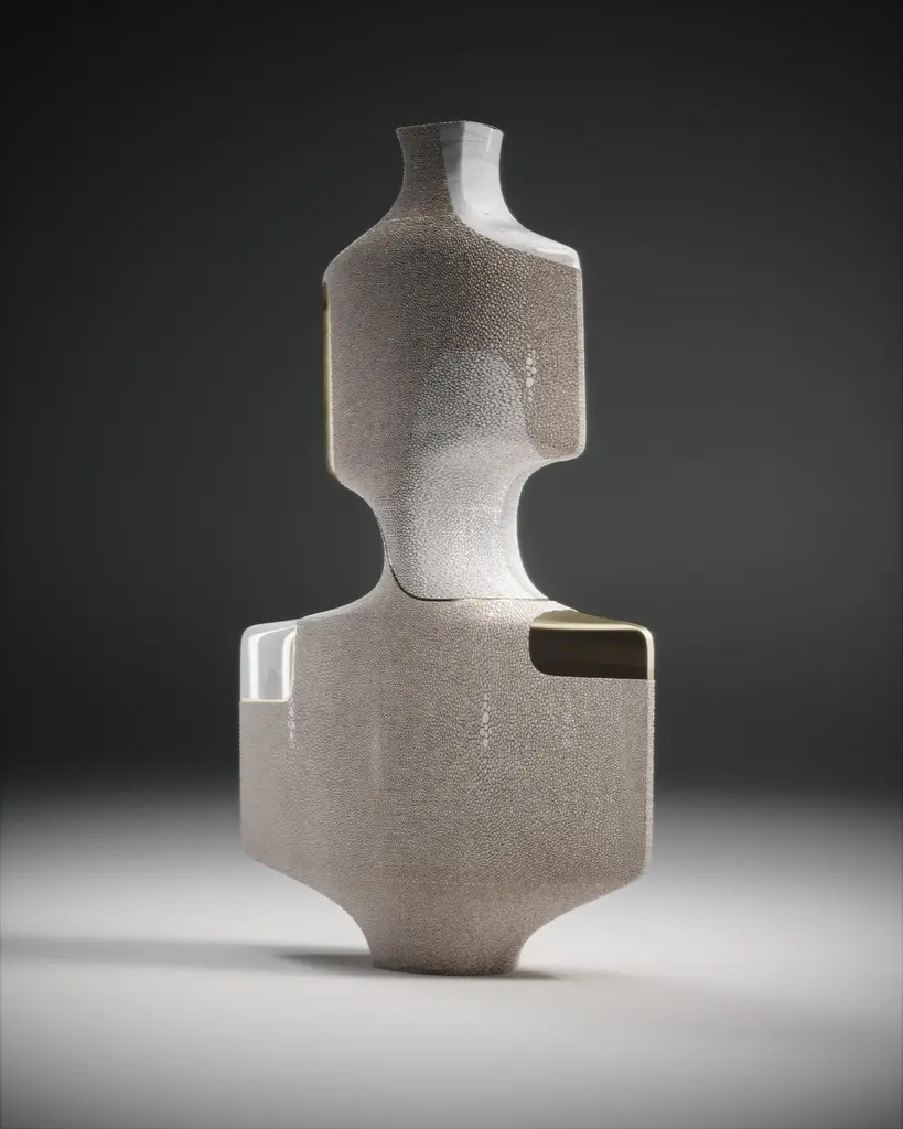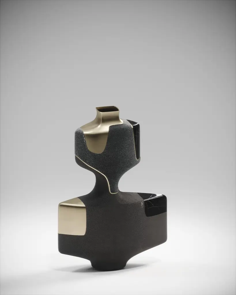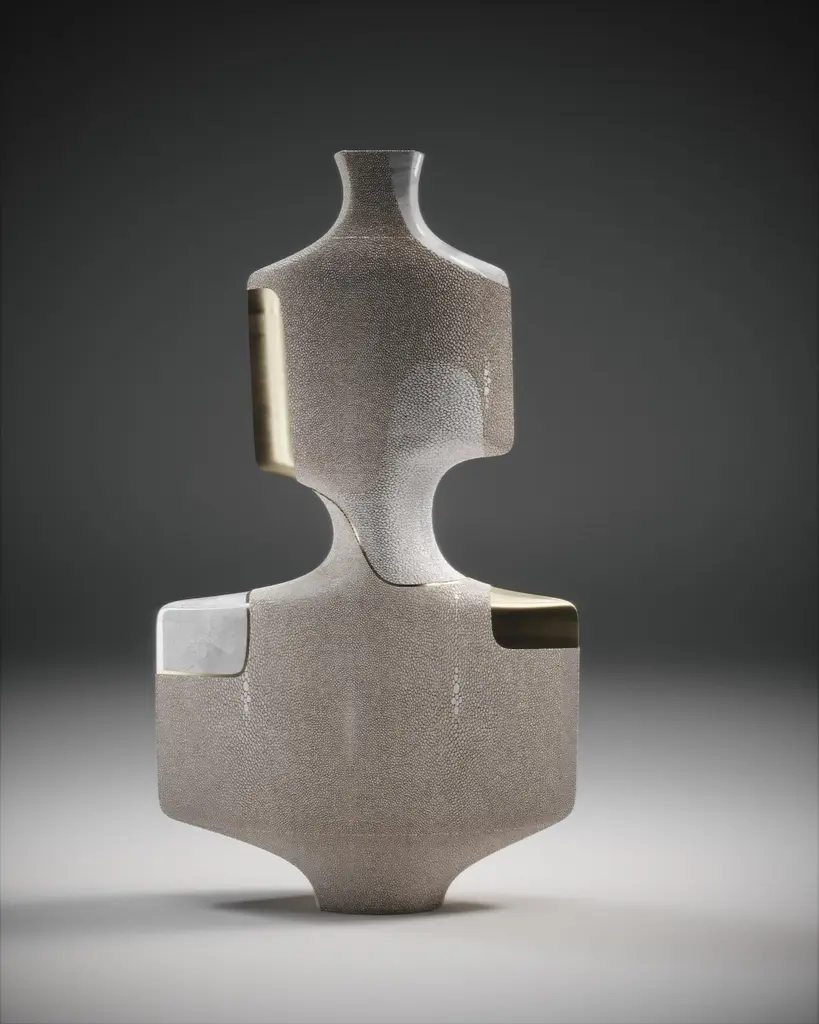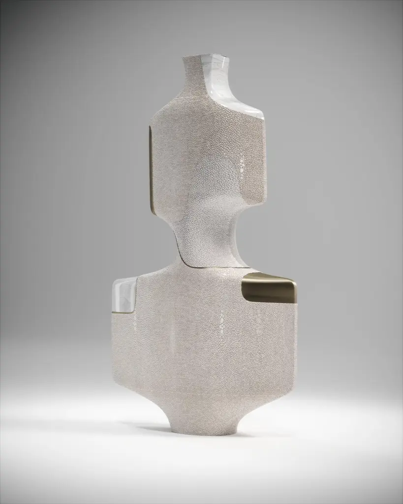 Shagreen Sculptural Vase With Pen Shell And Brass Details By R&y Augousti