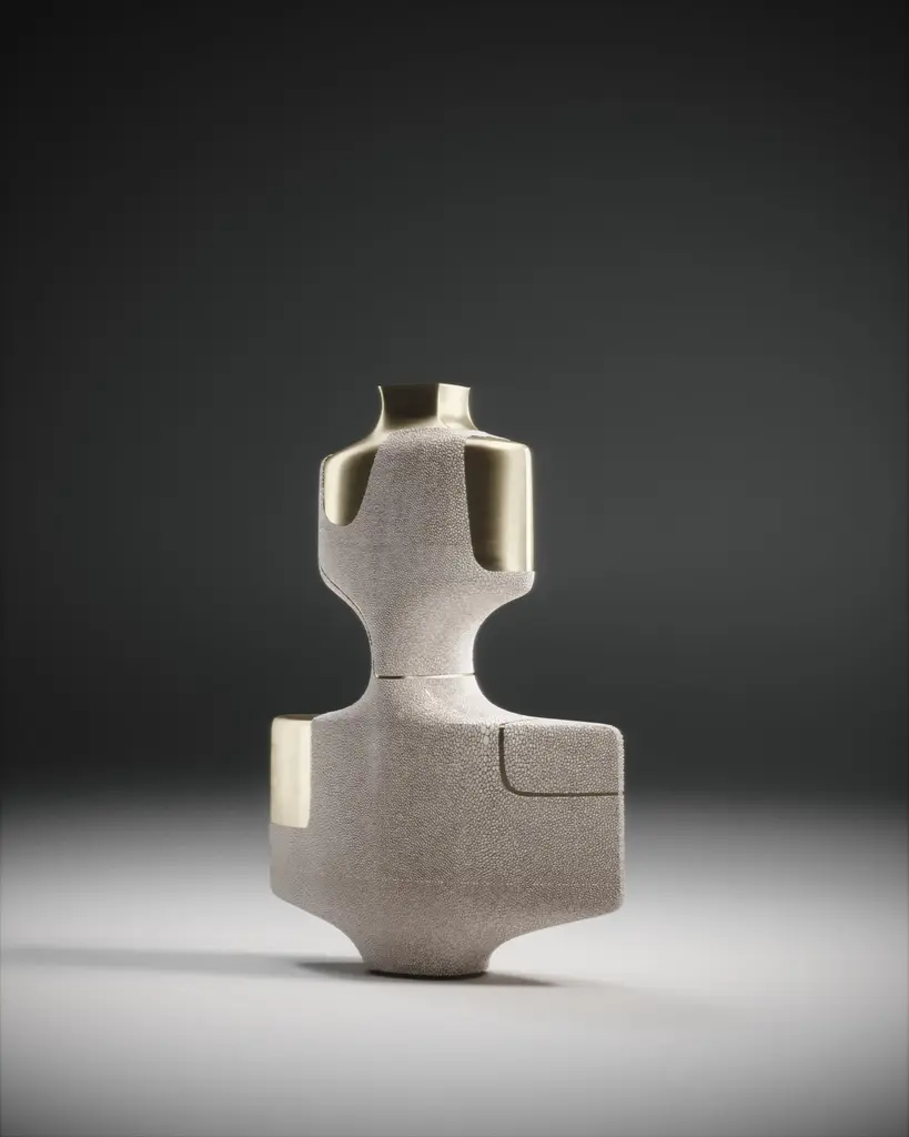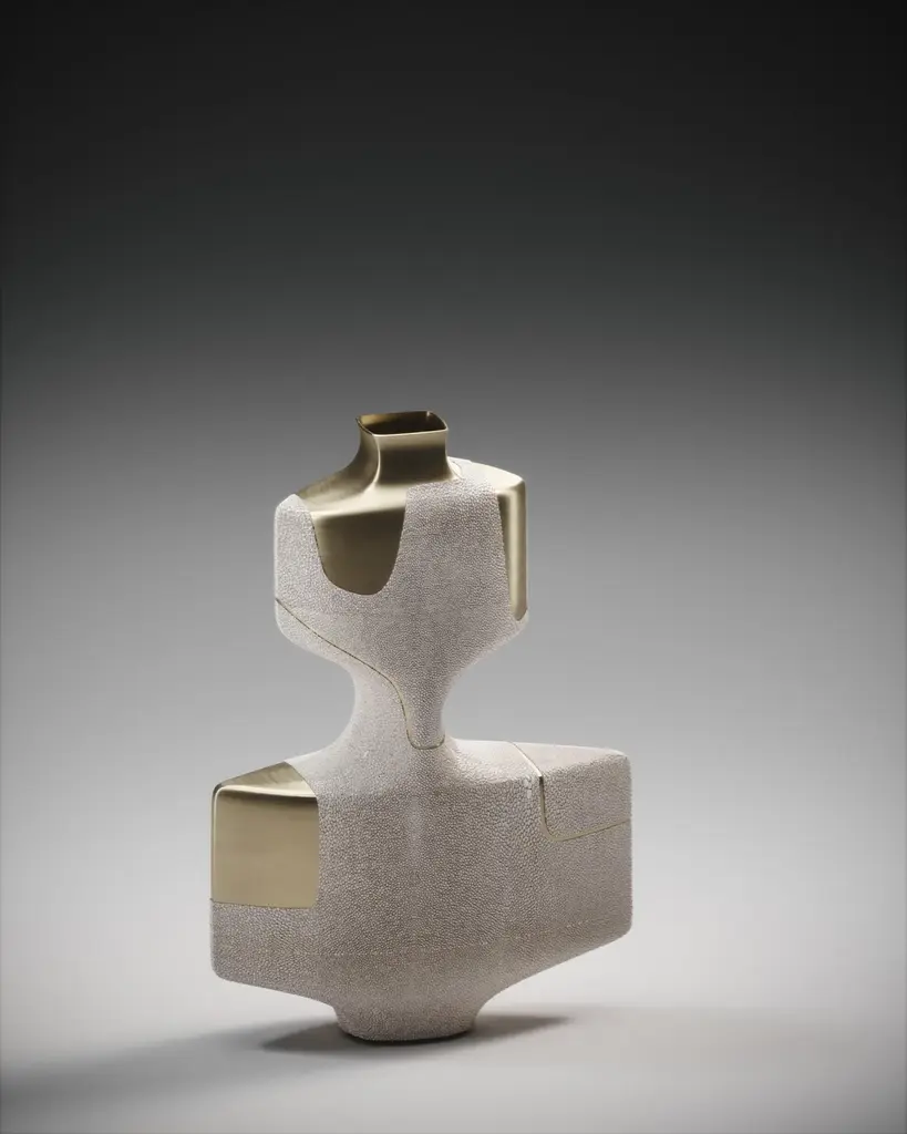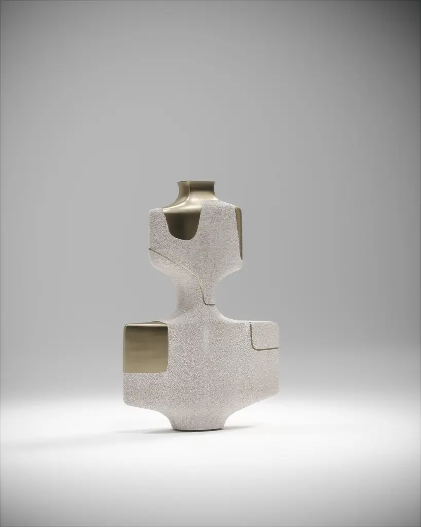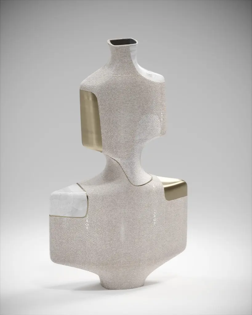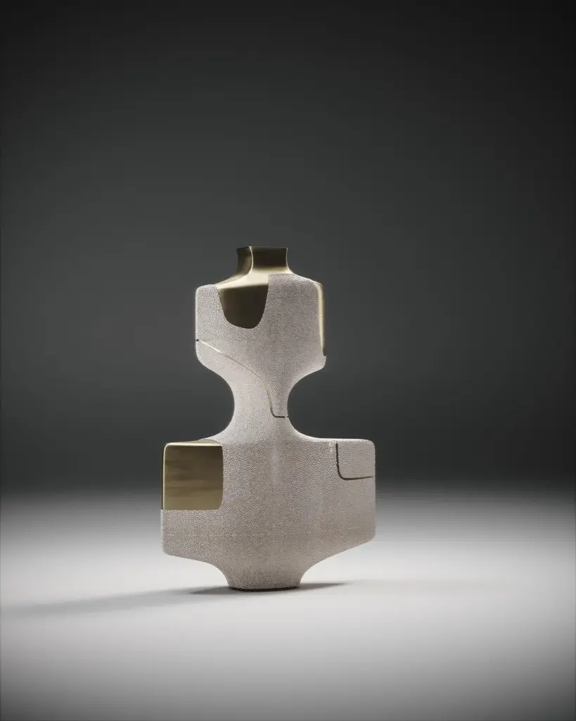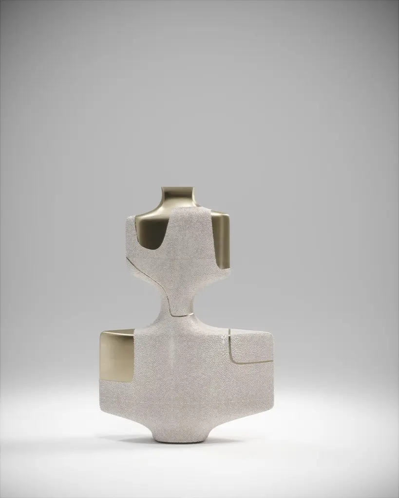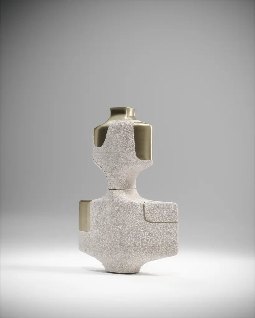 Shagreen Sculptural Vase With Pen Shell And Brass Details By R&y Augousti
