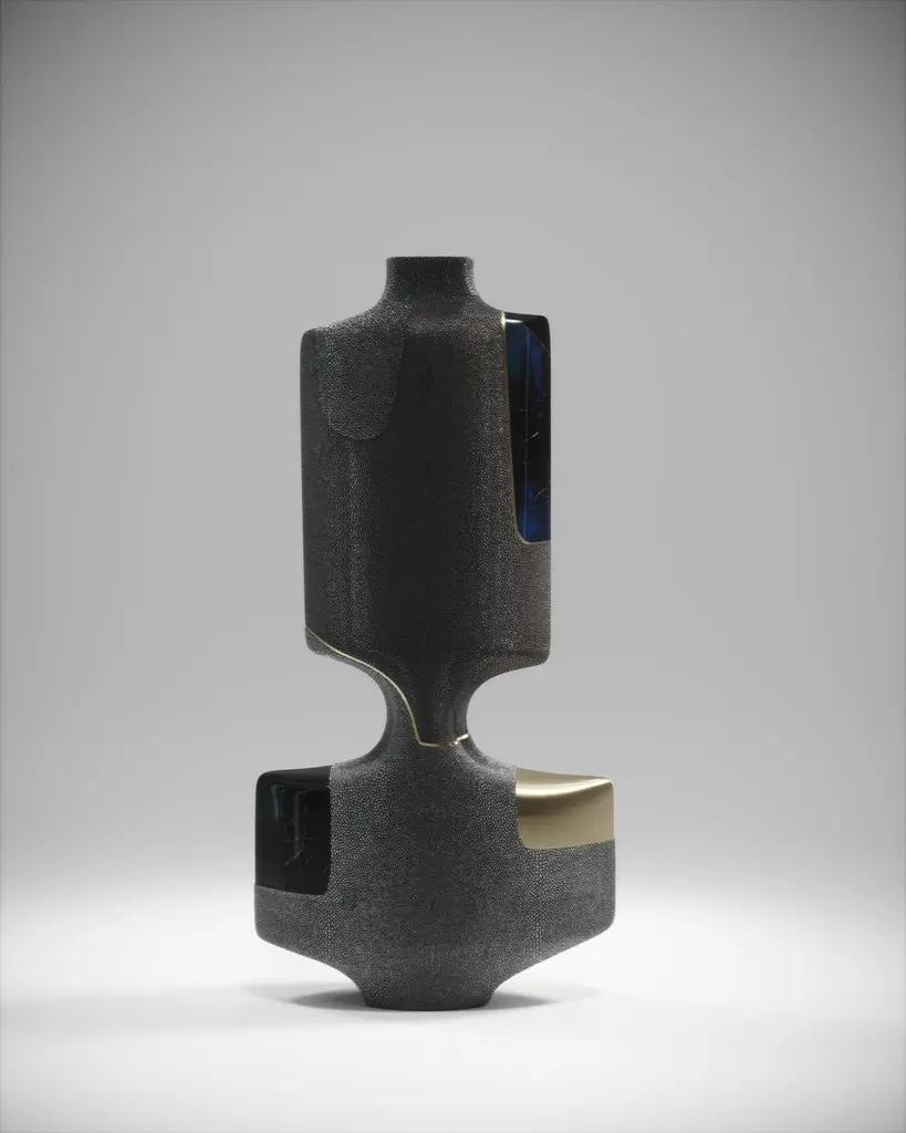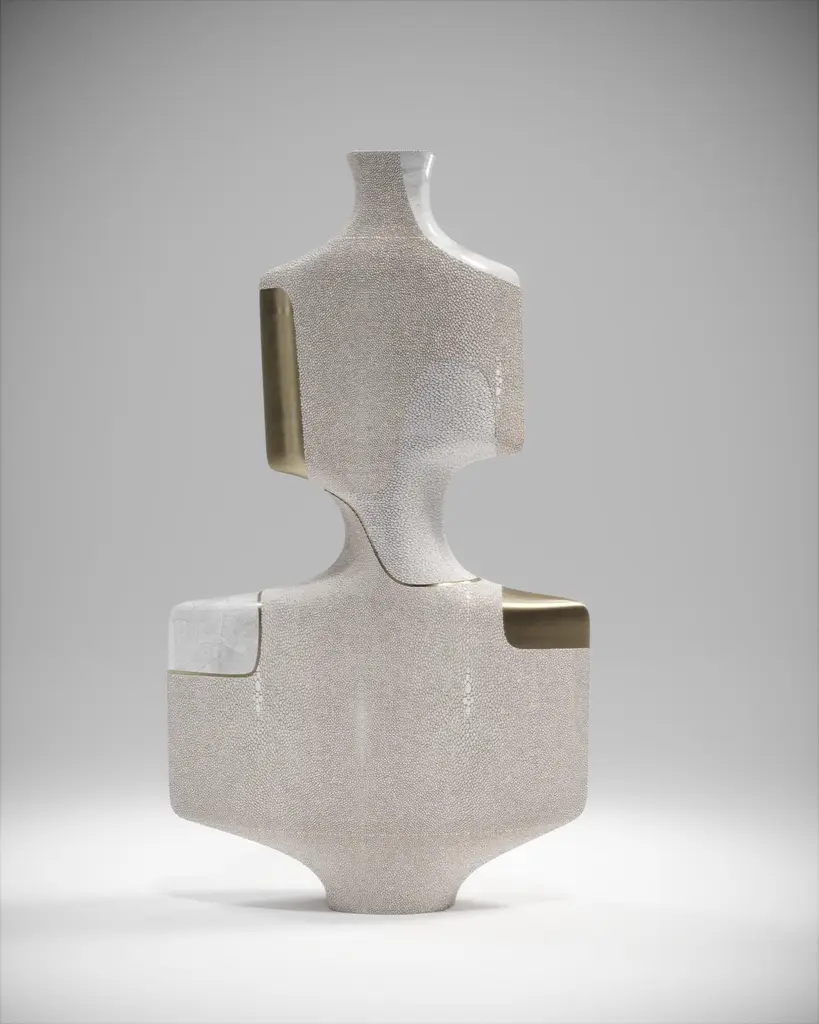 Shagreen Sculptural Vase With Pen Shell And Brass Details By R&y Augousti