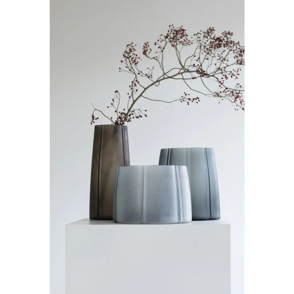 The Shapes vase by Serax is a minimalist statement piece by praised Dutch designer Piet Boon, where simplicity meets subtle decorative detail most elegantly. Made from mouth-blown glass, the vase captivates with its matte finish and delicate folds that add an artistic sense of rhythm to the design. The Shapes vase is perfect for showcasing a single bloom or a lush bouquet, or simply as a refined design object on its own.