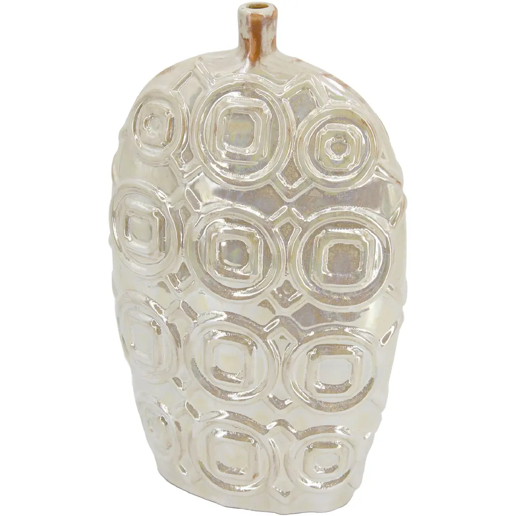 Shelby Iridescent Glaze Ceramic Vase - 9" x 3.5" x 16" - Cream