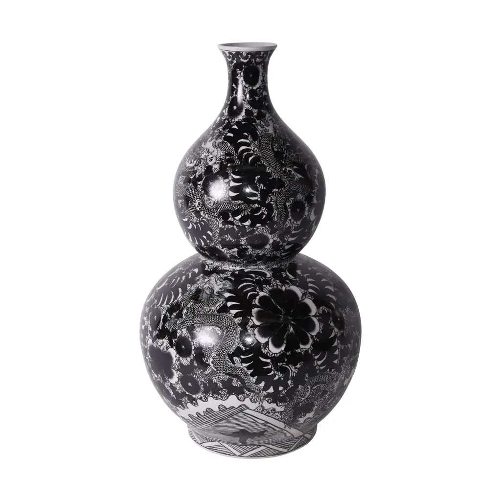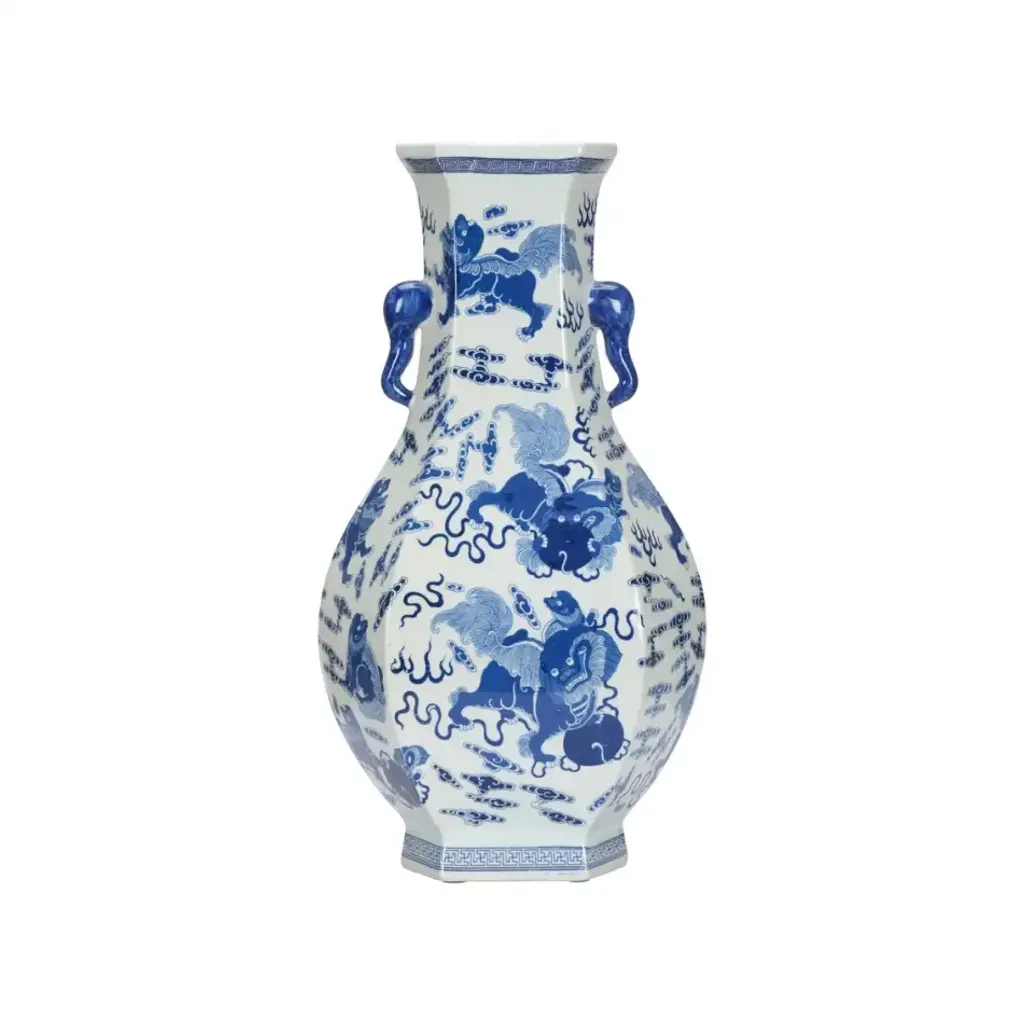 The Shi Vase is a timeless piece that captures the elegance and charm of traditional Chinese artistry. This stunning vase features a classic blue and white color palette, renowned for its serene and sophisticated aesthetic, making it a perfect addition to any room. The vase showcases a hand-painted dragon, gracefully dancing across the smooth porcelain surface. The intricate details capture the dragon's majestic form, with its sinuous body, flowing whiskers, and dynamic movement, evoking a sense of vitality and strength Ideal for collectors and admirers of fine art, this vase is a testament to the enduring allure of Chinoiserie design and the elegance of blue and white porcelain.