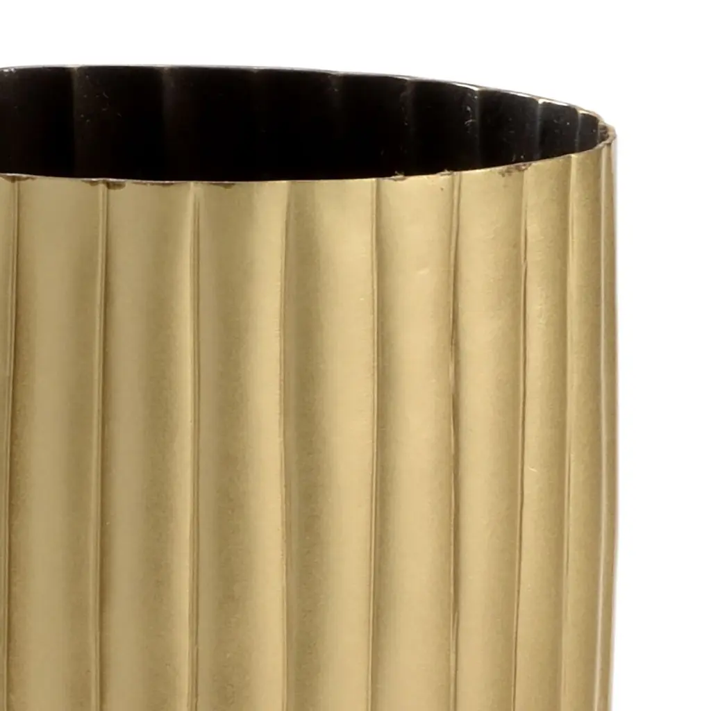 Classic and clean lines marry in this delightful metal vase. Crafted with a brushed gold finish and elegant fluted detailing, its slender silhouette and pedestal base bring a sophisticated touch to any space. Ideal for displaying on a console, mantel, or shelf, this vase adds modern glamour and sculptural interest to your d�����cor. For decorative use only.