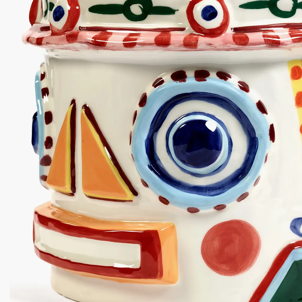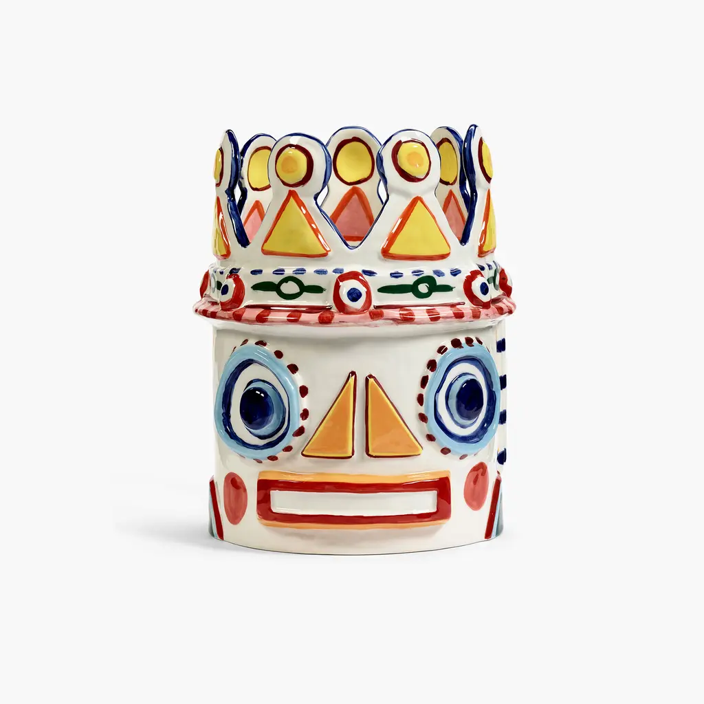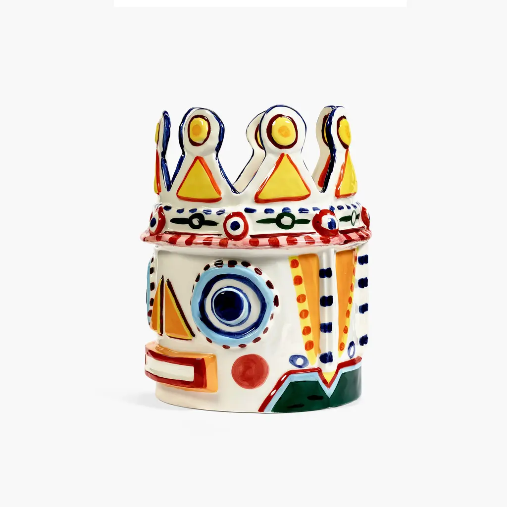 Decorate your home with the splendid Serax Sicily Vase 02 that captures the essence of Sicily’s history, culture and decorative motifs. Created in a collaboration between Sicilian artist Ivo Bisignano and award-winning chef Yotam Ottolenghi, the vase draws inspiration not only from the island’s ancient legends, but also from Ottolenghi’s exuberant cooking style. Part of a series of four vases, this design references Sicily’s legends with a whimsical take on mythical kings. Made by skilled artisans, every stoneware vase is carefully decorated by hand with intricate motifs and vibrant colors that celebrate the island’s traditions. Perfect to create a focal point anywhere, from living rooms to dining areas and entryways, the Serax Sicily Vase 02 will add a striking decorative accent to your living space.