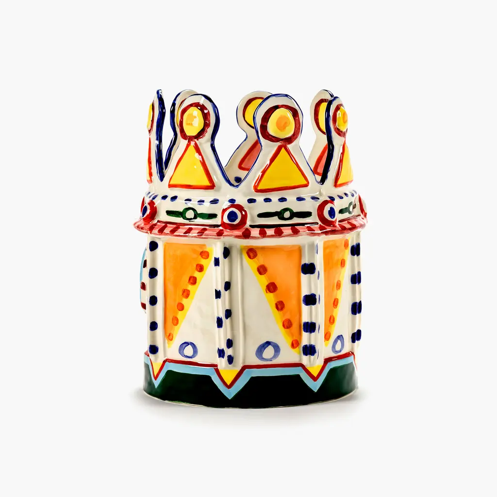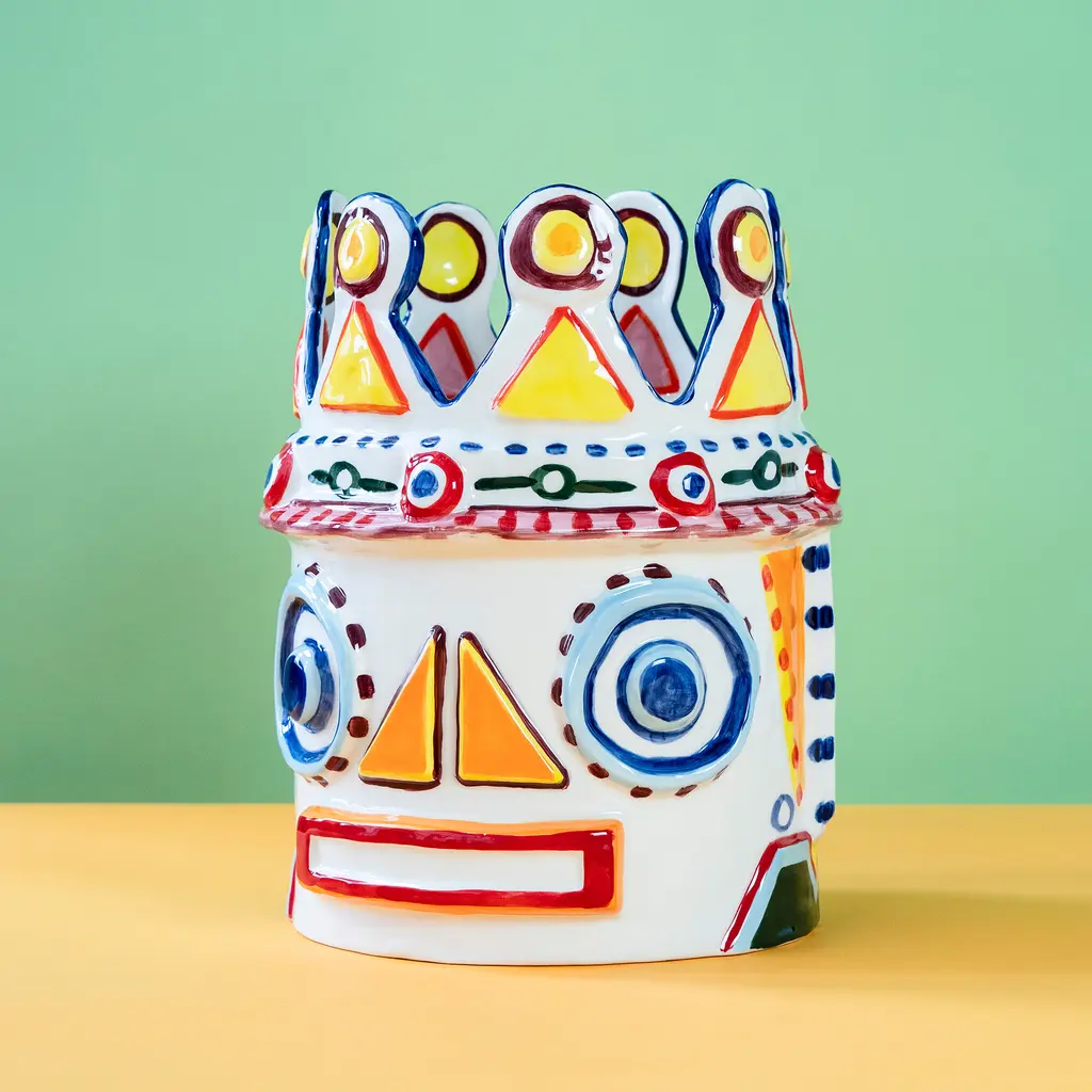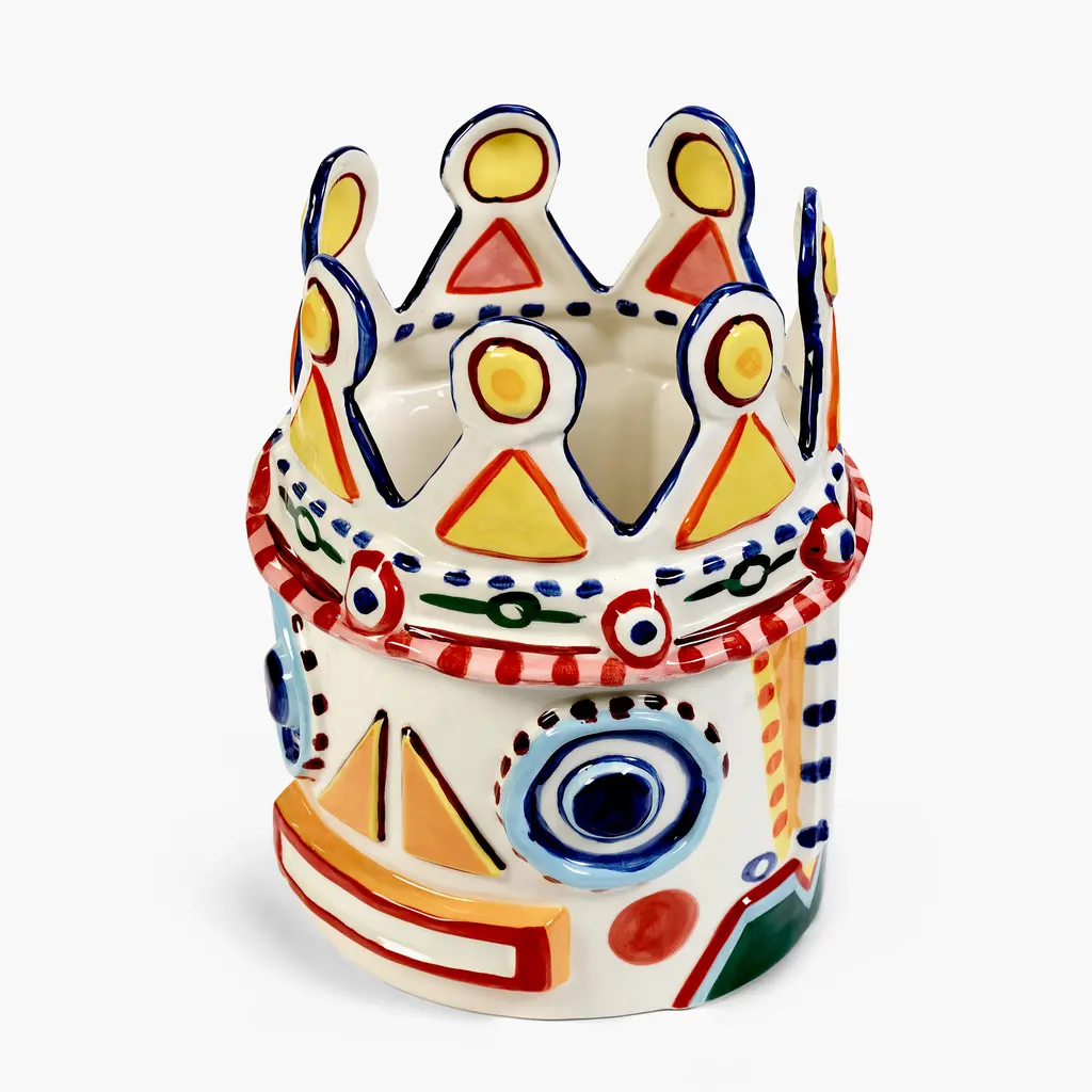 Decorate your home with the splendid Serax Sicily Vase 02 that captures the essence of Sicily’s history, culture and decorative motifs. Created in a collaboration between Sicilian artist Ivo Bisignano and award-winning chef Yotam Ottolenghi, the vase draws inspiration not only from the island’s ancient legends, but also from Ottolenghi’s exuberant cooking style. Part of a series of four vases, this design references Sicily’s legends with a whimsical take on mythical kings. Made by skilled artisans, every stoneware vase is carefully decorated by hand with intricate motifs and vibrant colors that celebrate the island’s traditions. Perfect to create a focal point anywhere, from living rooms to dining areas and entryways, the Serax Sicily Vase 02 will add a striking decorative accent to your living space.