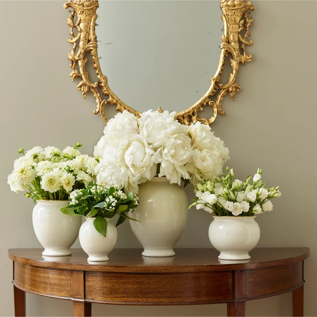 The Siena Vase Collection offers artisanal quality and a luxurious look, through wide rims, subtle ribbing on the surface and a an elegant gilded finish.