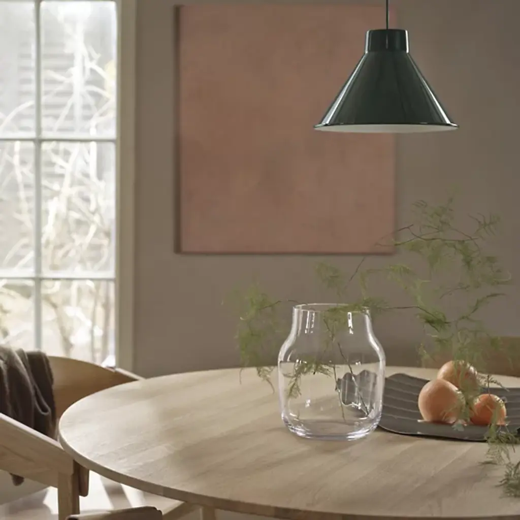 The Silent Vase from Muuto speaks volumes without saying a word. Designer Andreas Engesvik has distilled Scandinavian aesthetics into its purest form. Mouth-blown glass gives each vase a subtle individuality, with imperceptible variations that make it unique. The vase's clean lines and unassuming presence allow it to complement any space. Its versatility shines through, whether displaying a single stem or a full bouquet. The Silent Vase doesn't demand attention - instead, it quietly enhances its surroundings, allowing your floral arrangements to take center stage.