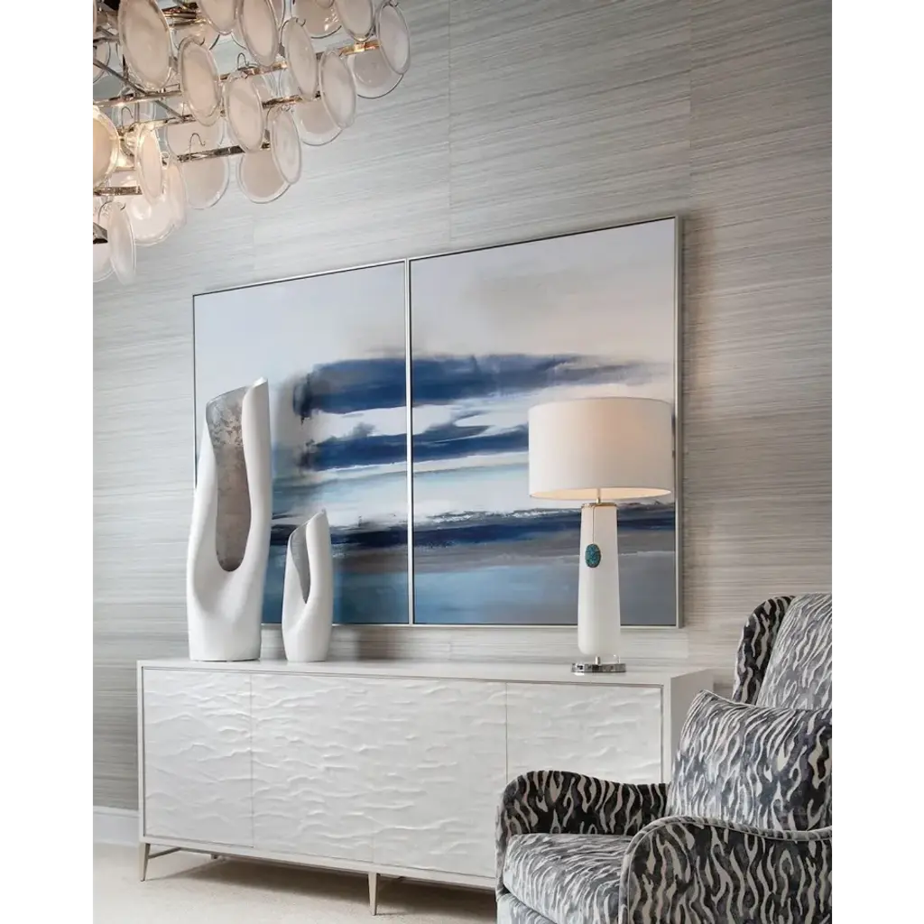 The Avata Vase is an abstract artistic statement that showcases stunning asymmetry and gorgeous curvature. Crafted from ceramic, the body features a matte white finish that imbues the piece with a pristine look. An alluring curved opening along the front side displays an exposed interior adorned in silver leaf, completing the look and creating synergy with a variety of contemporary décors.