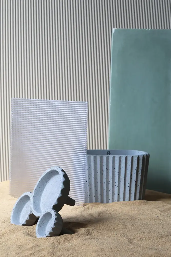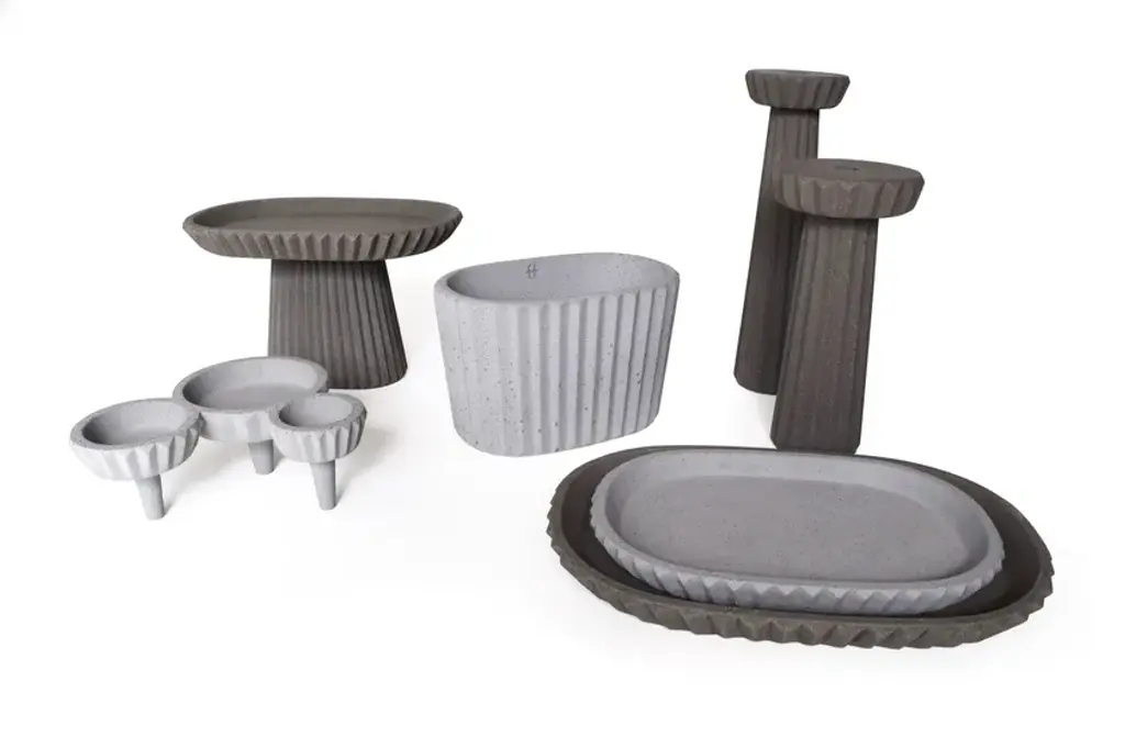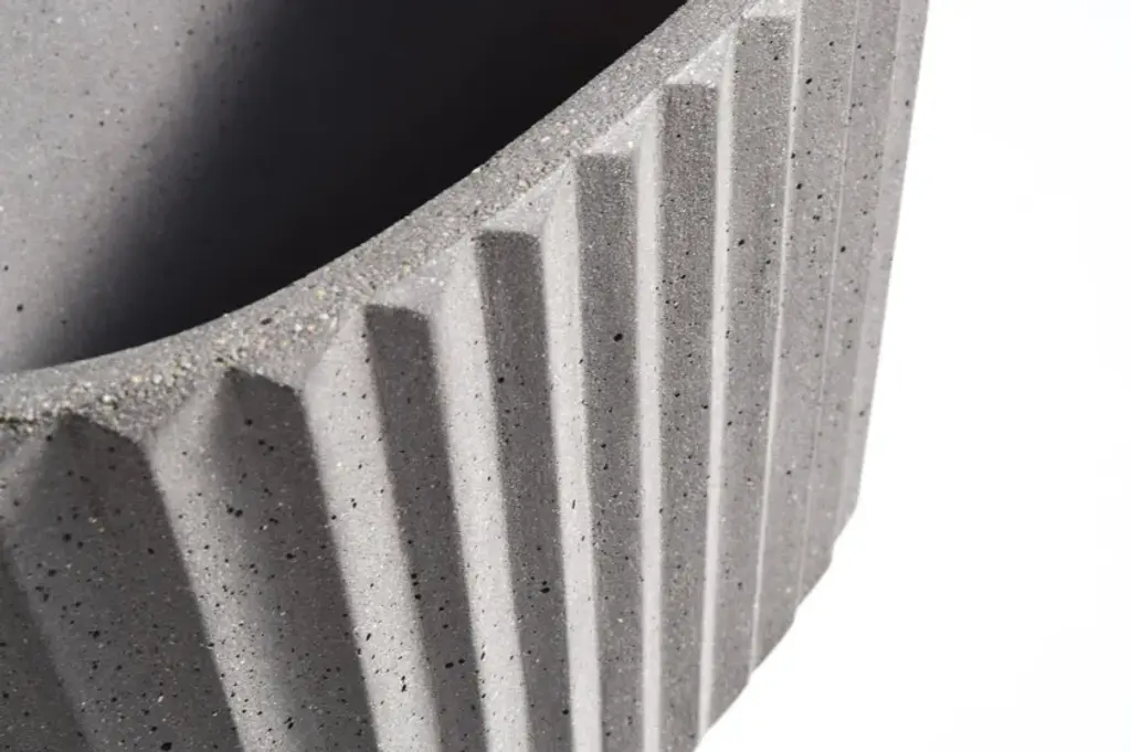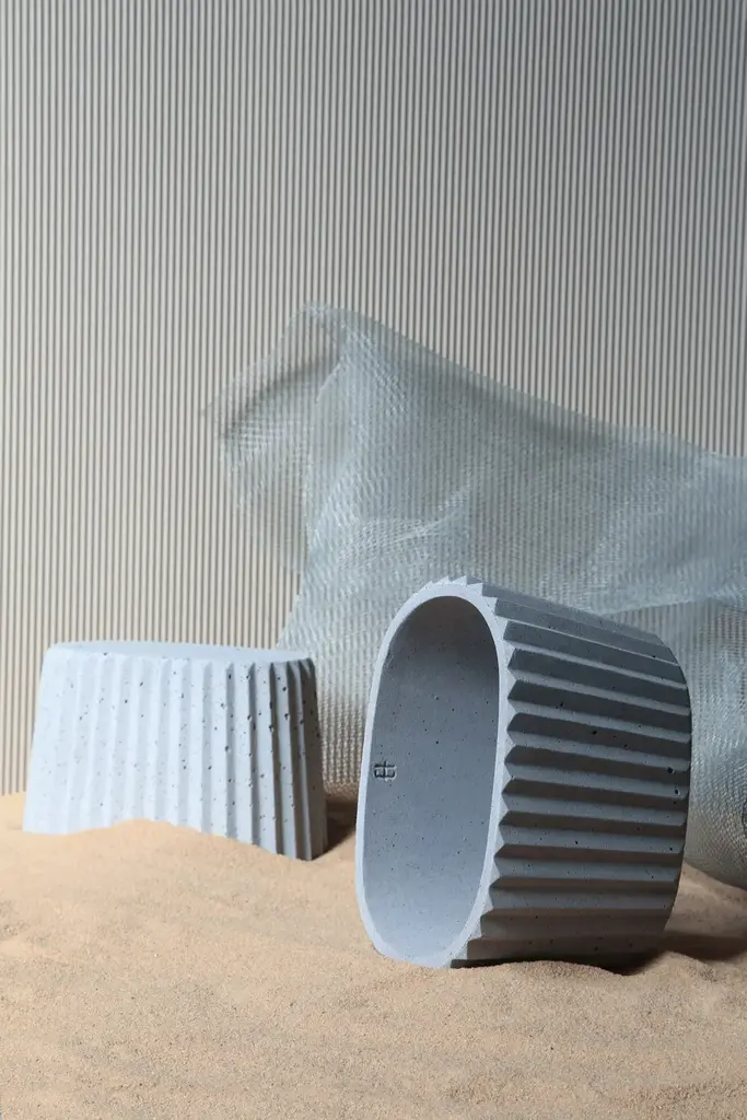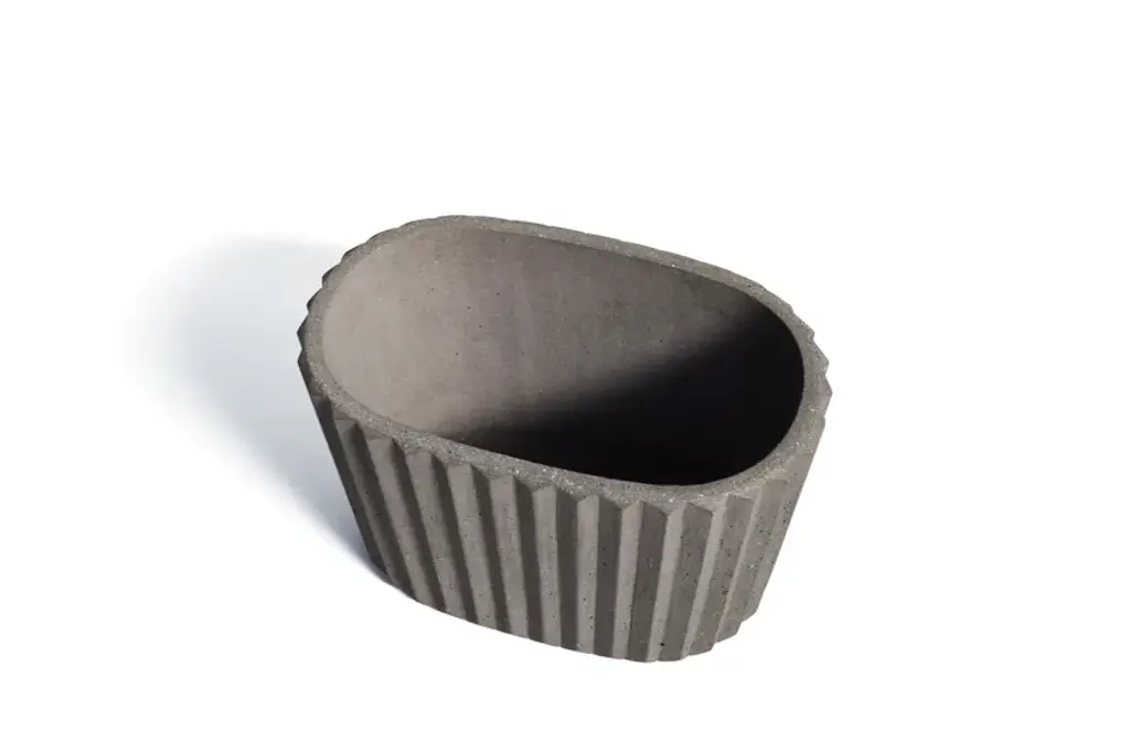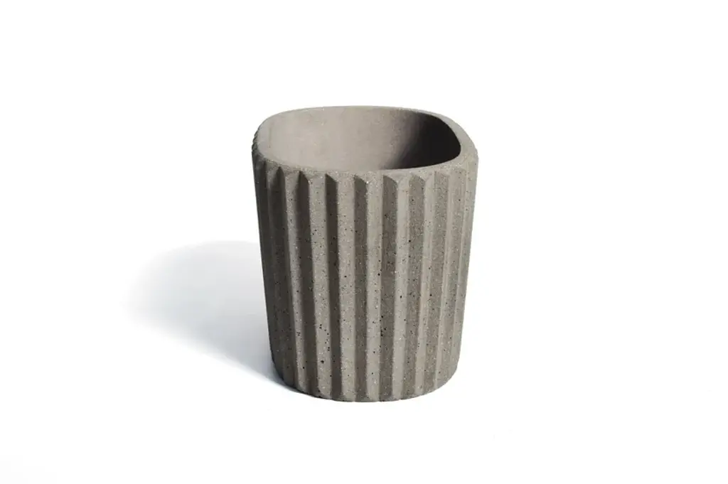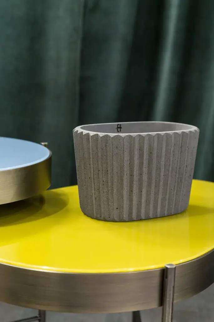 Siman vase, designed by Gian Paolo Venier in 2018, is crafted of cast concrete.Available in 2 shades that highlight the texture of the concrete – light grey and anthracite – the collection is hand produced by Urbi et Orbi in Greece.SIMAN Collection is a family of 7 concrete tableware objects, one washbasin and a pendant lamp conceived by Italian designer Gian Paolo Venier for our 2018 series. A passionate traveler, Gian Paolo Venier is in constant search of afar atmospheres to add to his design vocabulary. A postcard representing the ancient Toghrul tower, situated near Teheran (Iran) was the starting point for this collection. The name comes from the Farsi term “siman”, which means concrete.Marked by the iconic pleating, which creates an everchanging game of shadows and depths these pieces carry a strong architectural character.