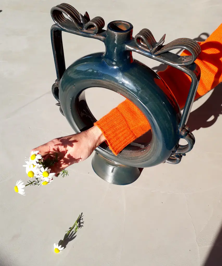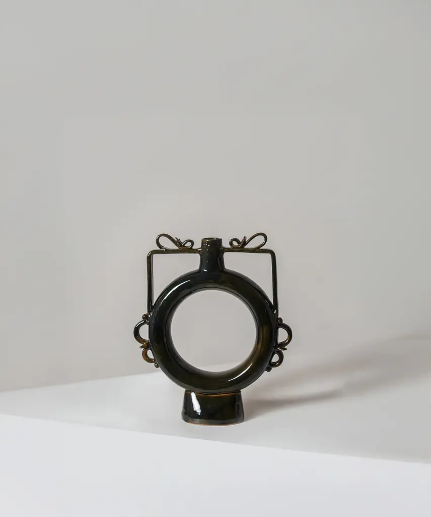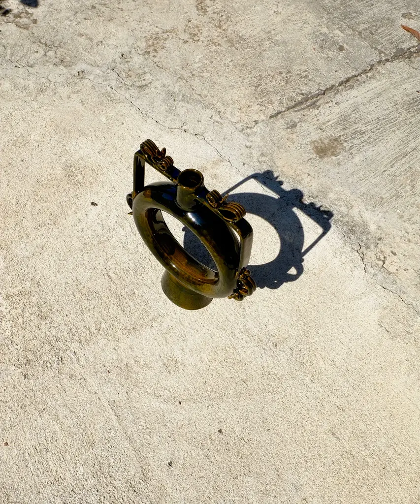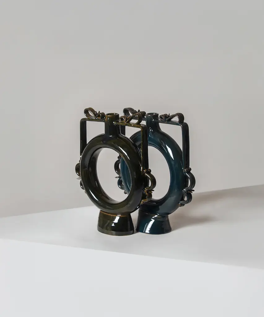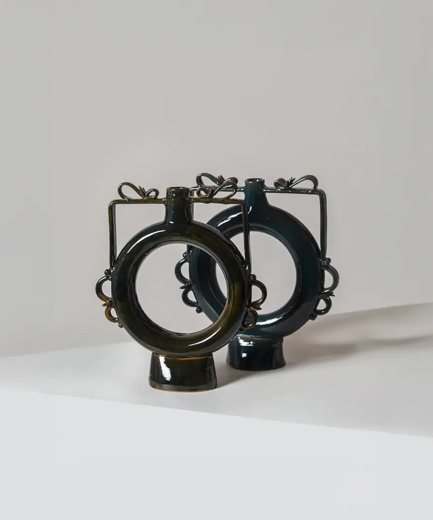 Once, the Romans & Greeks used these vases as canteens, slung over their shoulder as they marched. Now, void of usefulness, the vases are adorned intricately and placed in safe spots around the house to be admired for their beauty. Designed by Walter Usai for Sardinian-based design publisher, Pretziada.