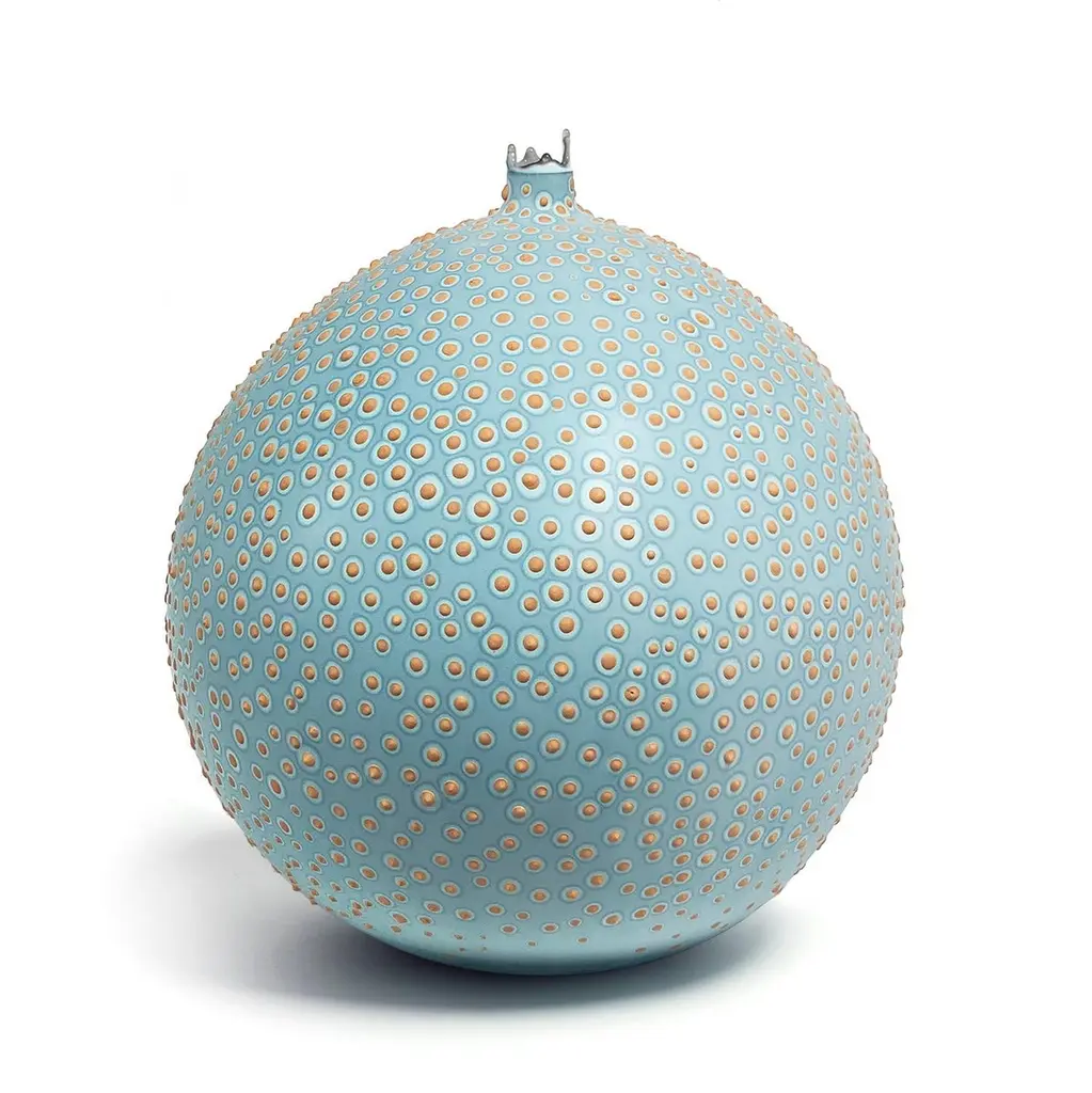 Sky Pasteur vase by Elyse GrahamDimensions: W 28 x D 28 x H 30 cmMaterials: Plaster, ResinMolded, dyed, and finished by hand in LA. CustomizationAvailable.All pieces are made to order.Our Microbe Collection is inspired by the unique galaxy of microorganisms living within each of us. We created a technique for dying and stippling each vase that evokes the nature of microbes as they grow and colonize . Each vase is hand-cast with hydrocal plaster inside of a unique balloon shape. The interior of each piece is poured with layers of resin, making it waterproof. Finally, each vase is hand-dyed with custom mixed pigments and finished with a unique pattern of dyed plaster protuberances. The exterior of each vase is sealed with a UV resistant acrylic coating. These vases are all handmade and will vary slightly in shape, size, color and pattern.Founded in 2014 and based in Los Angeles, the Elyse Graham Studio is a place where unusual materials and experimental processes are implemented to create a melding of art and object. We design by making—with an emphasis on capturing the unique properties of the materials we use through exploration and innovation. Each piece we make is non-repeating and completely individual. We have intentionally designed every process we use — from how we mix our colors to how we cast our forms to highlight and celebrate the time-based, made by hand quality of our work. All of our pieces require a specific kind of care and attention at every level of production. At the core of our studio is our endless fascination with inviting the unknown into our work and exploring our passion for creating pieces that tell a story— about the materials they are made of, the artists who make them and the homes they live in. Each piece is a journey, come along with us.MEET OUR TEAMElyse Graham is the founder and creative director of the studio. Driven by Elyse’s unique vision of building a studio that fosters and emphasizes connection, play, and experimentation (of people, processes, and in turn the objects created and shared) our small team works closely and collaboratively on each project. Elyse received a BA in sculpture and semiotics at Brown University. After years of making sculpture and running a business in jewelry design, Elyse decided to merge her separate practices and redirect her attention toward collectible design in 2013. The creative trajectory of the studio is heavily influenced by Graham’s background in fine art, specifically her interest in process-driven and material-based artwork. The studio’s vocabulary of shapes, patterns, and forms comes from a lineage of unconventional processes Graham has developed and built for working with plaster and resin. Graham shares her studio as well as her home with her husband, Lewis Mauk and their daughter, Eero. Miller Robinson is head of our production department. From pigmenting and casting materials for all of our products in plaster and resin to graphic and production design, they wear many hats in our studio. Miller joined our team in 2014 and has been an integral part of designing many of our experimental processes that have lead to the creation of our unique MetaMATERIAL. Like Elyse, Miller has a background in material and process-oriented making, which led to an instant connection and collaborative understanding between the two. Miller received their BFA from Otis College of Art and Design with a focus on painting, installation, performance, and writing. Their individual art practice focuses on the preservation and potentialities of underrepresented histories and encompasses objects, garments, actions, tattooing, and books. Their personal work has been exhibited in Los Angeles at the Southwest Museum, Los Angeles Municipal Art Gallery, Heritage Square Museum, and with Los Angeles Contemporary Exhibitions (LACE), as well as HORESEANDPONY Fine Arts in Berlin.Lewis Mauk is our studio and operations engineer. Working on facilities and production design as well as engineering and leading all of our large-scale constructions and installations, Lewis’ unique set of technical skills gives form and structure to our studio’s unconventional ideas and processes. Lewis has been working behind-the-scenes since the creation of the studio but joined our team full-time in 2020. Consistent with the rest of our team, Lewis has a background in process-driven fine art and has extensive training in woodworking, printmaking, and photography. He received a MFA from CalArts and has worked across the fields of education and fabrication. Lewis’ combined interest in the creation of personal archives mixed with his commitment to sustainable life practices, has brought a focus and important emphasis on designing studio projects and processes that imagine ways to reduce and reuse studio material fragments.