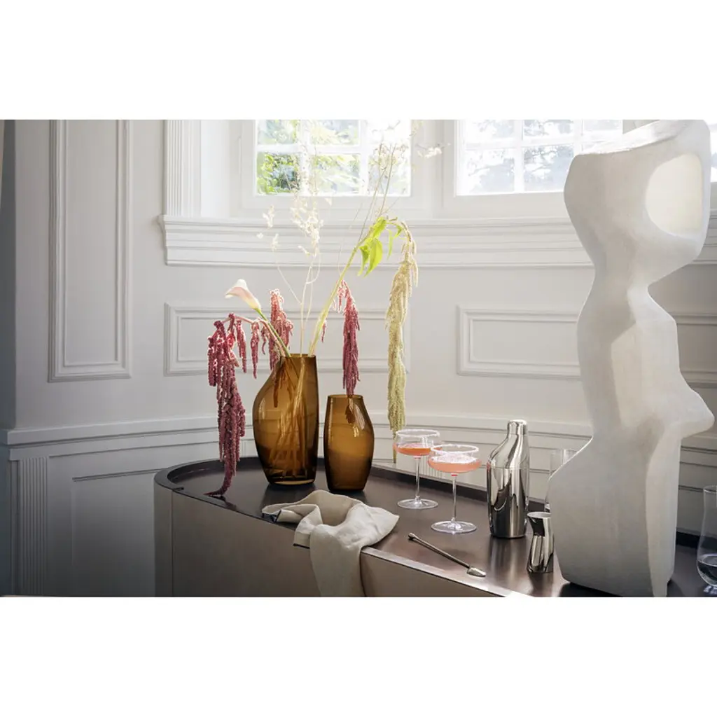 The Sky vase offers a stunning backdrop for both lush floral arrangements as well as delicate single stems. Made of glass, the Sky vase is part of Georg Jensen’s tableware range designed by Aurelien Barbry. With its soft, organic shapes and high-quality materials, the Sky collection celebrates both functionality and beauty. Set the table for a casual dinner or use the pieces of the Sky series to give a sculptural touch for a festive table setting.