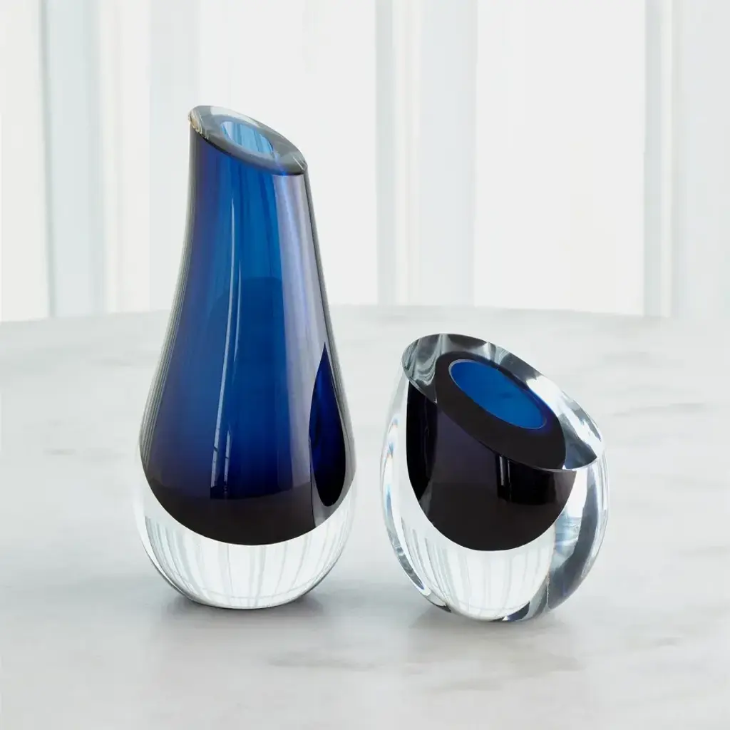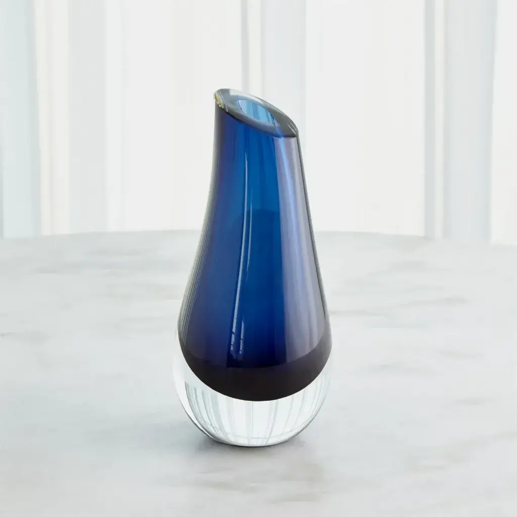 Handcrafted by Polish artisans, the Slant Vase is accomplished by blowing clear and blue-colored glass into layers. From a fashion forward perspective, Global Views offers accessories, furniture, statement lighting, and an assortment of rugs and mirrors to add beauty and joy to your home.