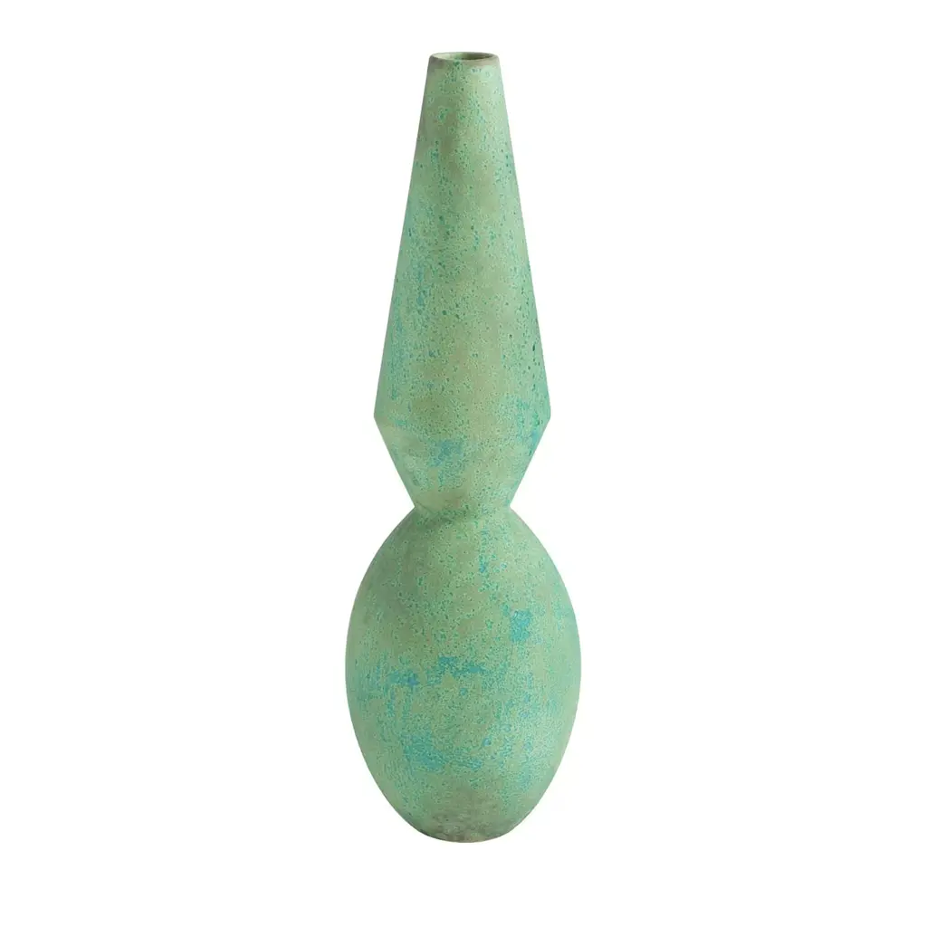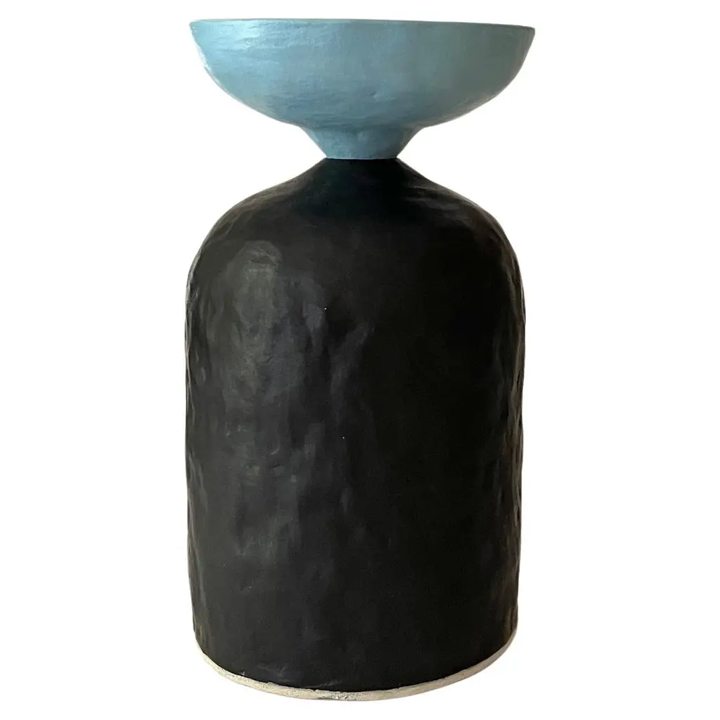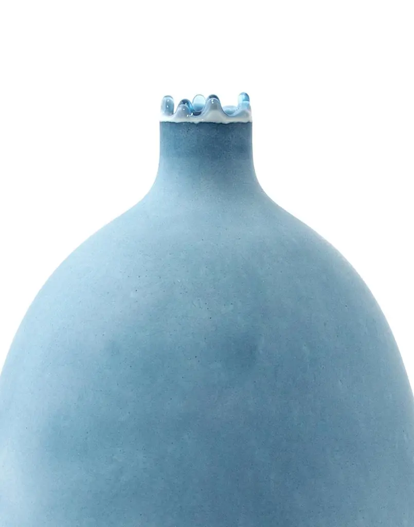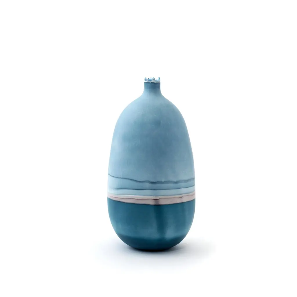 Slate blue mercury vase by Elyse GrahamDimensions: W 14 x D 14 x H 25.5cmMaterials: Plaster, ResinMOLDED, DYED, AND FINISHED BY HAND IN LA. CUSTOMIZATIONAVAILABLE.ALL PIECES ARE MADE TO ORDERThis collection of vessels is inspired by striated landscapes caused by glacial erosion as well as the beautiful colors found in foliated metamorphic rock.Though often thought to be either ceramic or glass, these pieces are neither. Graham has designed a unique process for creating these pieces. Each drip vase is hand-cast with hydrocal plaster inside of a unique balloon shape. The interior of each piece is poured with layers of resin, making it waterproof. Finally, each drip vase is hand-dyed by the artist with layer after layer of custom mixed pigments and then sealed with a UV resistant acrylic coating. These vases are all handmade and will vary slightly in shape, size, color and pattern.MEET OUR TEAMElyse Graham is the founder and creative director of the studio. Driven by Elyse’s unique vision of building a studio that fosters and emphasizes connection, play, and experimentation (of people, processes, and in turn the objects created and shared) our small team works closely and collaboratively on each project. Elyse received a BA in sculpture and semiotics at Brown University. After years of making sculpture and running a business in jewelry design, Elyse decided to merge her separate practices and redirect her attention toward collectible design in 2013. The creative trajectory of the studio is heavily influenced by Graham’s background in fine art, specifically her interest in process-driven and material-based artwork. The studio’s vocabulary of shapes, patterns, and forms comes from a lineage of unconventional processes Graham has developed and built for working with plaster and resin. Graham shares her studio as well as her home with her husband, Lewis Mauk and their daughter, Eero. Miller Robinson is head of our production department. From pigmenting and casting materials for all of our products in plaster and resin to graphic and production design, they wear many hats in our studio. Miller joined our team in 2014 and has been an integral part of designing many of our experimental processes that have lead to the creation of our unique MetaMATERIAL. Like Elyse, Miller has a background in material and process-oriented making, which led to an instant connection and collaborative understanding between the two. Miller received their BFA from Otis College of Art and Design with a focus on painting, installation, performance, and writing. Their individual art practice focuses on the preservation and potentialities of underrepresented histories and encompasses objects, garments, actions, tattooing, and books. Their personal work has been exhibited in Los Angeles at the Southwest Museum, Los Angeles Municipal Art Gallery, Heritage Square Museum, and with Los Angeles Contemporary Exhibitions (LACE), as well as HORESEANDPONY Fine Arts in Berlin.Lewis Mauk is our studio and operations engineer. Working on facilities and production design as well as engineering and leading all of our large-scale constructions and installations, Lewis’ unique set of technical skills gives form and structure to our studio’s unconventional ideas and processes. Lewis has been working behind-the-scenes since the creation of the studio but joined our team full-time in 2020. Consistent with the rest of our team, Lewis has a background in process-driven fine art and has extensive training in woodworking, printmaking, and photography. He received a MFA from CalArts and has worked across the fields of education and fabrication. Lewis’ combined interest in the creation of personal archives mixed with his commitment to sustainable life practices, has brought a focus and important emphasis on designing studio projects and processes that imagine ways to reduce and reuse studio material fragments.