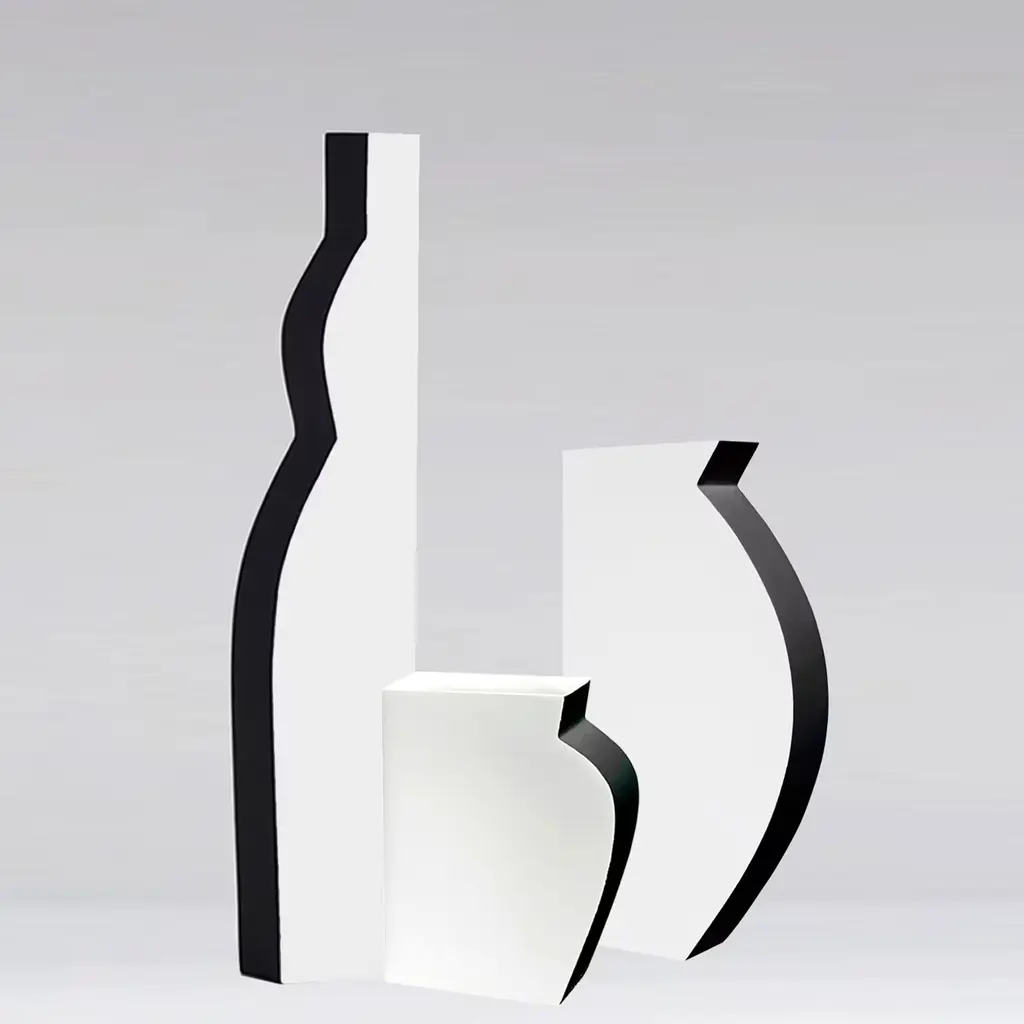 This elegant vase is made in ceramic with hand-applied paint on all sides. The sinuous silhouettes of the front and back are in white, while the narrow sides are in black, enhancing even further the visual effect of two-dimentionality of the shape. Modern sophistication and the charm of old materials and traditional techniques meet in this unique piece that can be displayed among other pieces of the same series for a magnificent final effect.