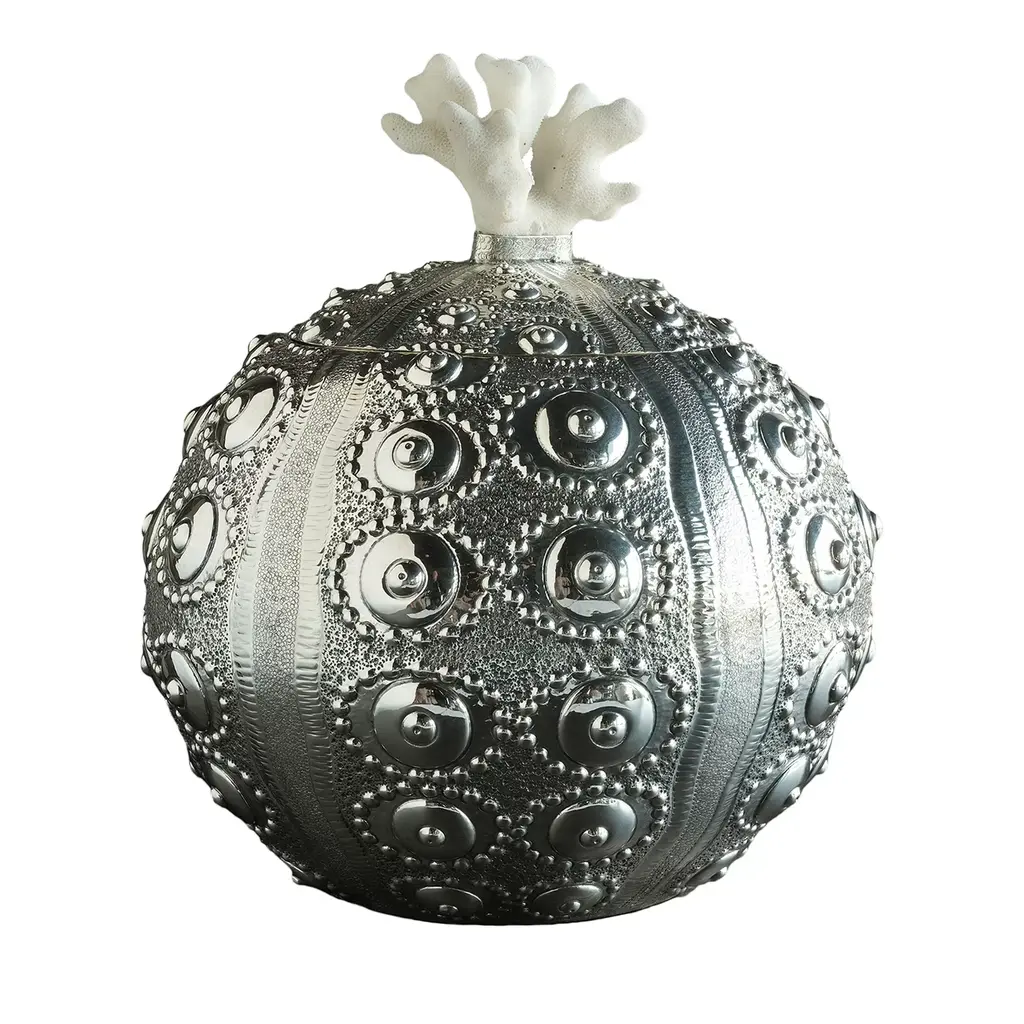 Inspired by cacti but with a glamour all its own, this rippled vase was crafted by Thai women near the border of Burma. Gold accents highlight the dazzling texture.