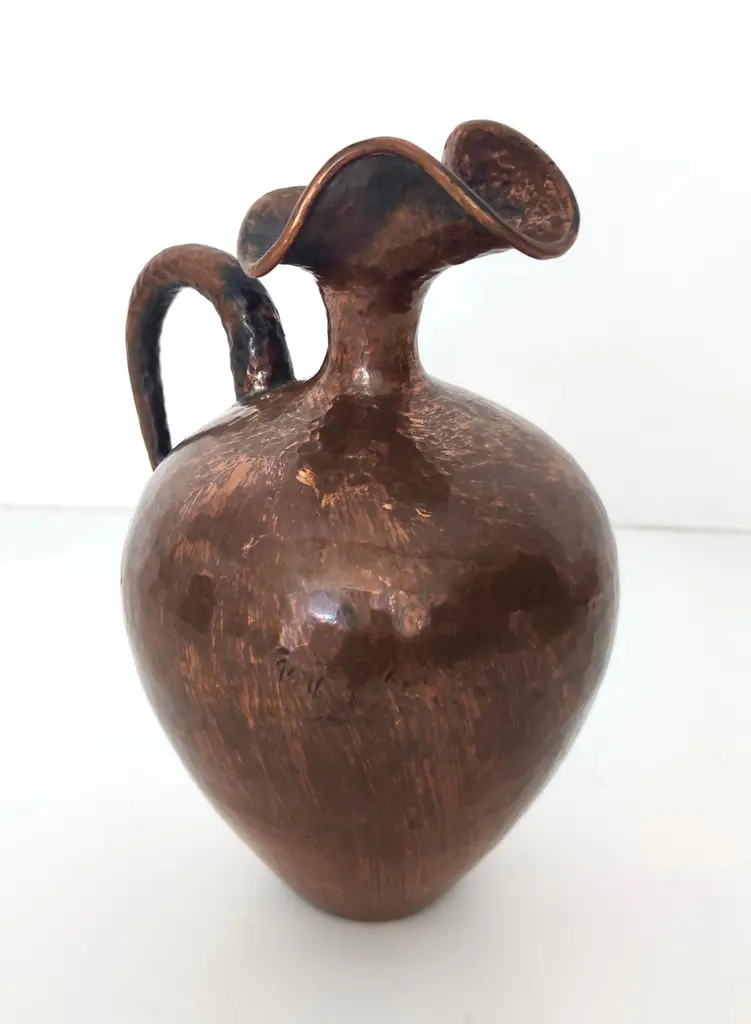 Small Vintage Embossed Copper Pitcher Vase By Egidio Casagrande, Italy