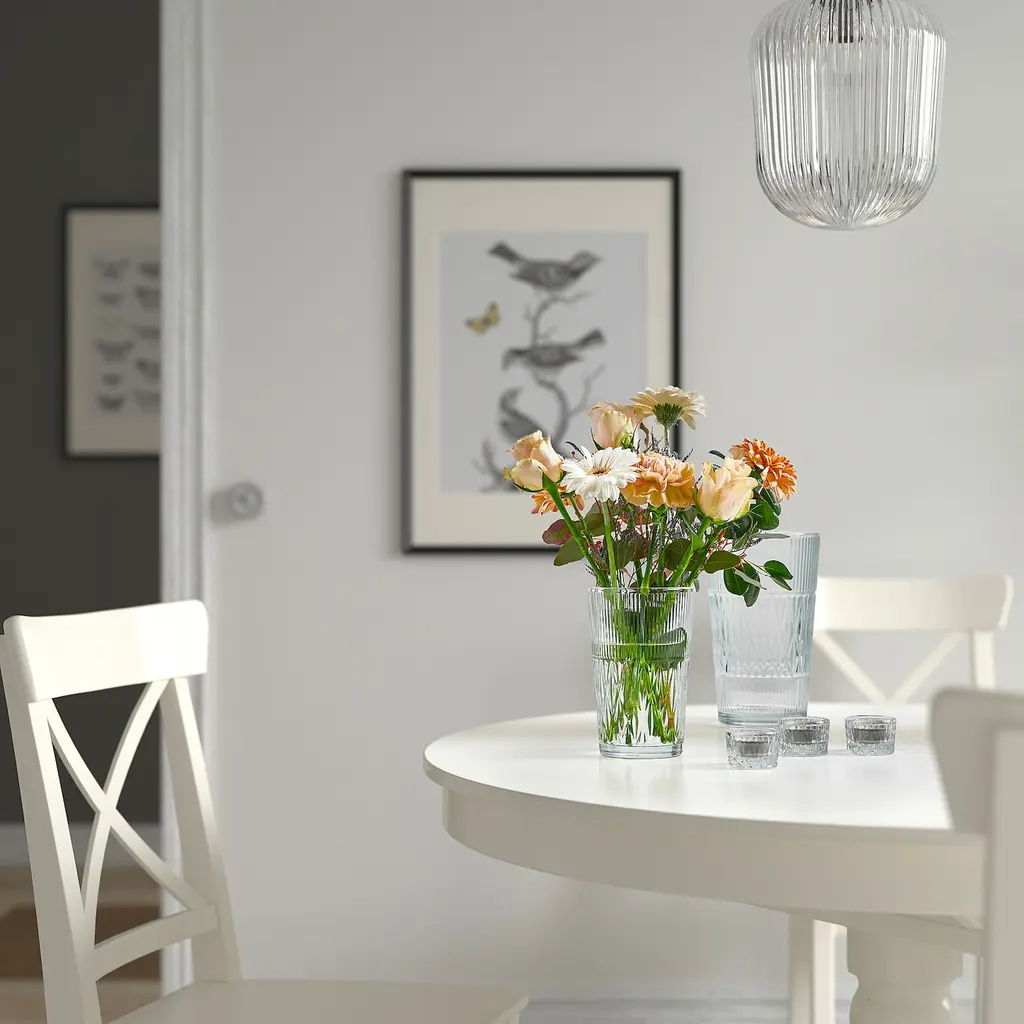 SMÄLLSPIREA Vase - clear glass/patterned 6 ¾ ". SMÄLLSPIREA is a timeless and elegant series inspired by traditional glass design. The vases are suitable for flowers with short stems, SMYCKA artificial flowers or a bouquet from your garden.