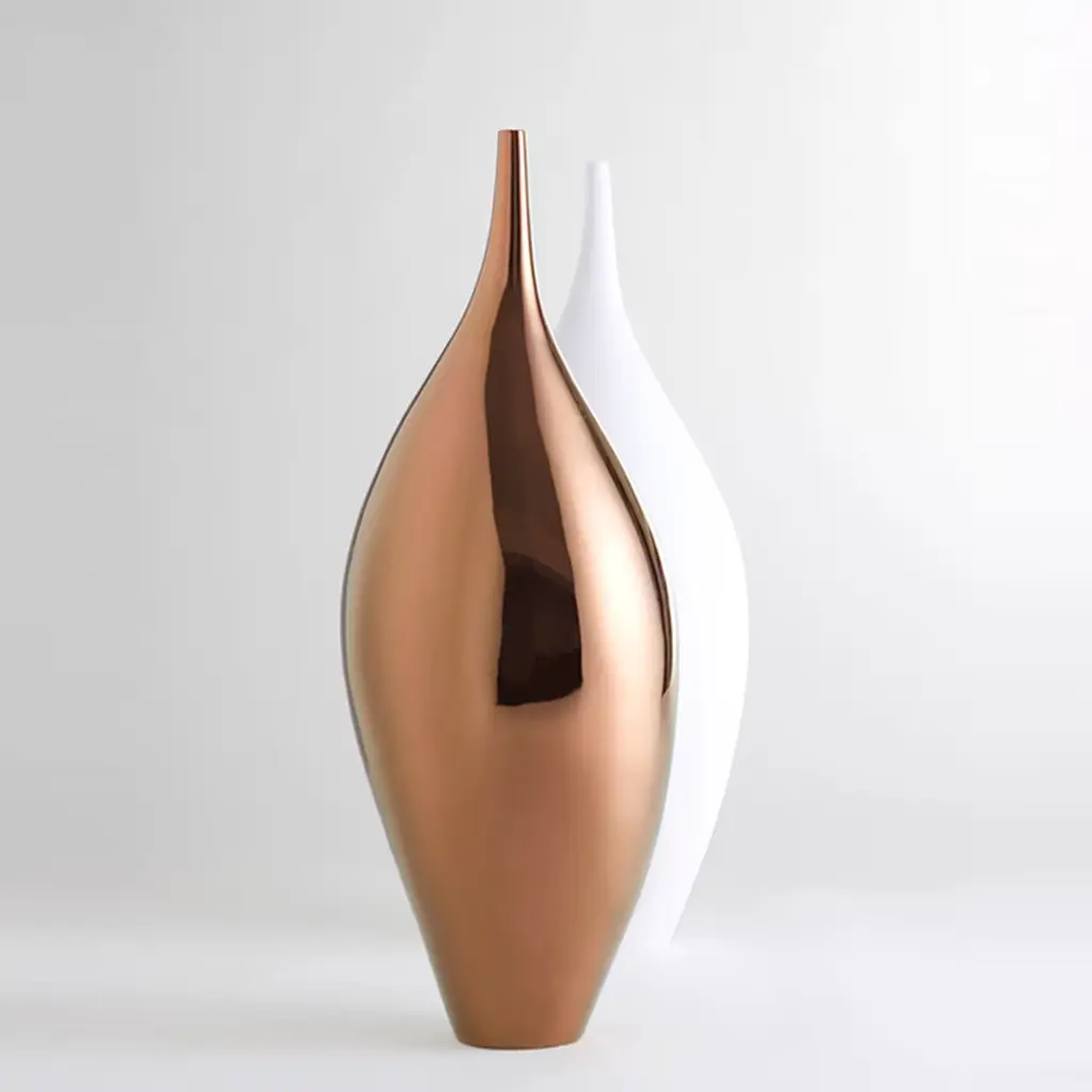 This sophisticated ceramic vase was entirely made by hand and poetically evokes the breath of life. It features a polished bronze finish whose smooth texture enhances the elongated lines of its delicate silhouette and gives a warm glow to its contemporary shape, making it suitable to decorate a modern interior or a more classic decor.