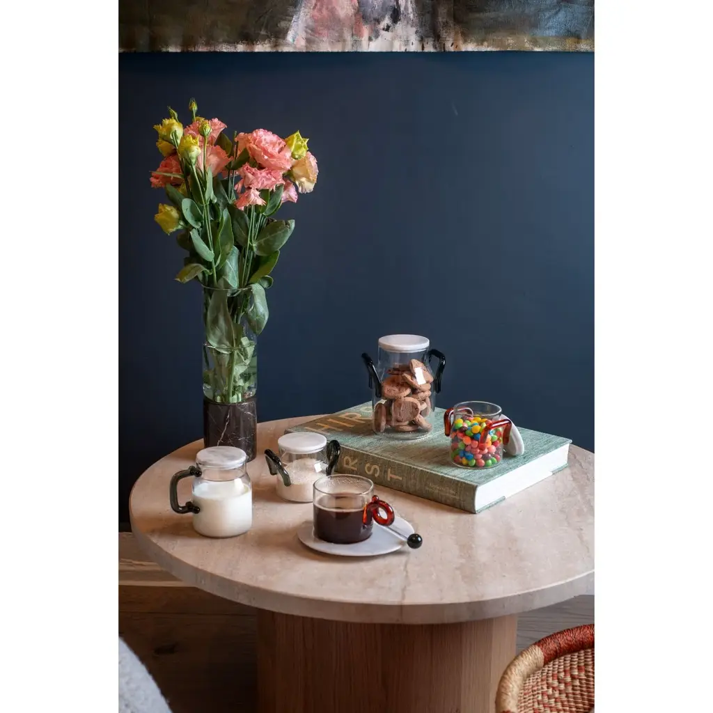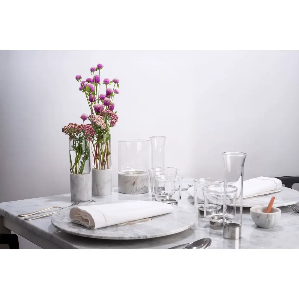 Soliflor Large vase to put some flowers and have a nice space where it is placed. The upper part made of borosilicate glass can be removed to change the water or wash it.Borosilicate glass is more complex and difficult to manufacture thanks to its thermal resistance, thin thicknesses but just as resistant as the traditional one. Alabaster gives it the stability to contain the flowers without them falling.This beautiful object goes very well in the home office, kitchen, as a centerpiece. Anywhere we like to put a flora detail.Available in 2 sizes