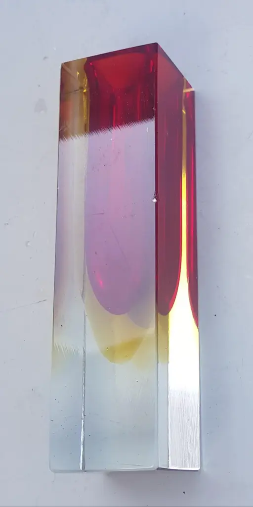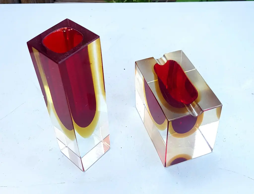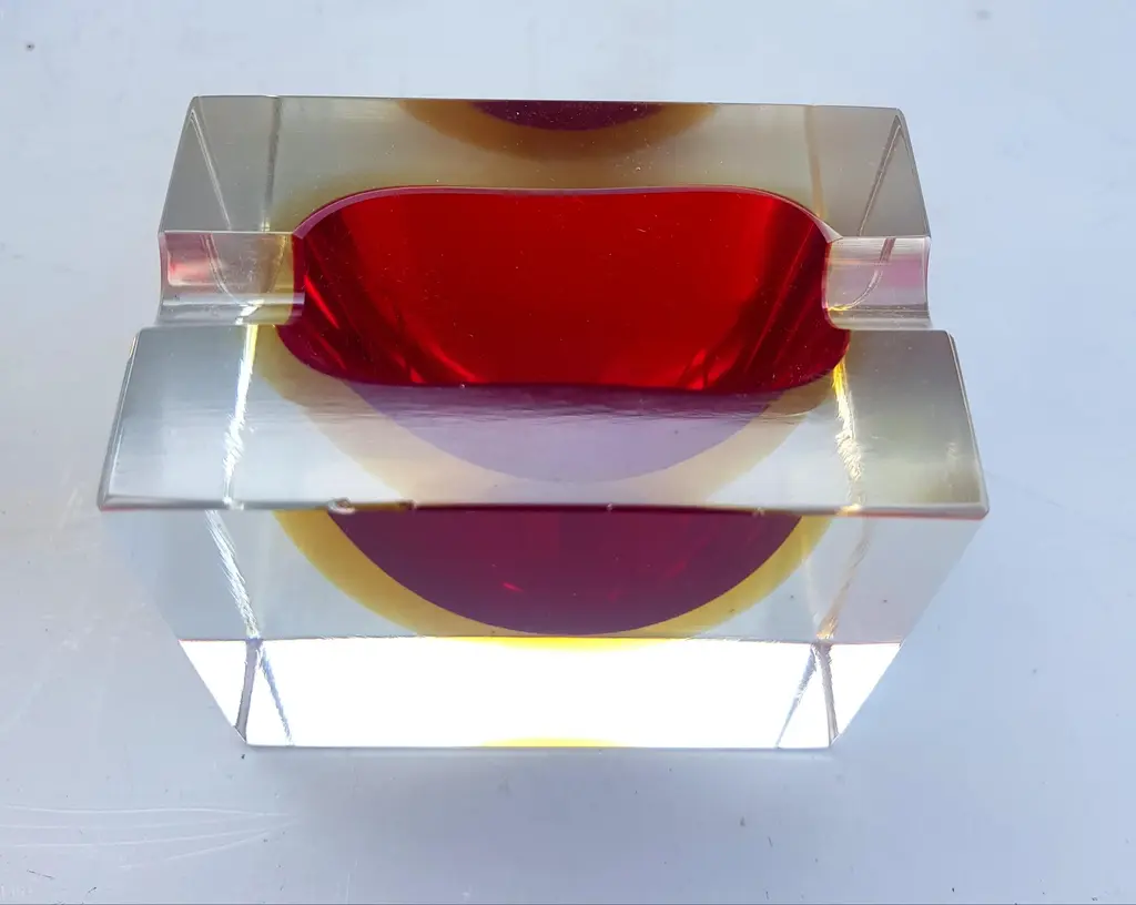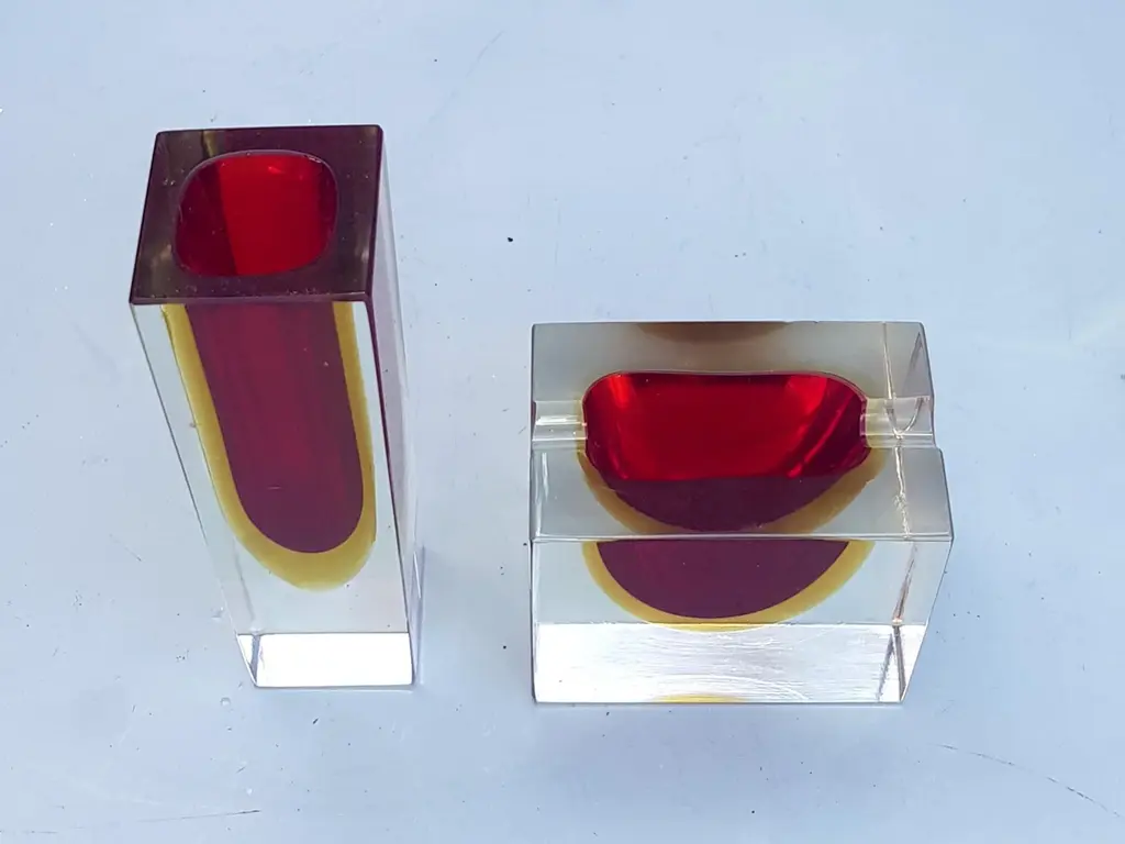 Sommerso Murano Glass Vase and Ashtray in Red and Yellow, 1950s, in Good conditions. Designed 1950 to 1959