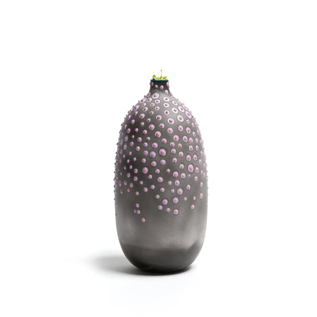 Soot Huxley vase by Elyse GrahamDimensions: W 14 x D 14 x H 25.5 cmMaterials: Plaster, ResinMOLDED, DYED, AND FINISHED BY HAND IN LA. CUSTOMIZATIONAVAILABLE.ALL PIECES ARE MADE TO ORDEROur Microbe Collection is inspired by the unique galaxy of microorganisms living within each of us. We created a technique for dying and stippling each vase that evokes the nature of microbes as they grow and colonize . Each vase is hand-cast with hydrocal plaster inside of a unique balloon shape. The interior of each piece is poured with layers of resin, making it waterproof. Finally, each vase is hand-dyed with custom mixed pigments and finished with a unique pattern of dyed plaster protuberances. The exterior of each vase is sealed with a UV resistant acrylic coating. These vases are all handmade and will vary slightly in shape, size, color and pattern.Founded in 2014 and based in Los Angeles, the Elyse Graham Studio is a place where unusual materials and experimental processes are implemented to create a melding of art and object. We design by making—with an emphasis on capturing the unique properties of the materials we use through exploration and innovation. Each piece we make is non-repeating and completely individual. We have intentionally designed every process we use — from how we mix our colors to how we cast our forms to highlight and celebrate the time-based, made by hand quality of our work. All of our pieces require a specific kind of care and attention at every level of production. At the core of our studio is our endless fascination with inviting the unknown into our work and exploring our passion for creating pieces that tell a story— about the materials they are made of, the artists who make them and the homes they live in. Each piece is a journey, come along with us.MEET OUR TEAMElyse Graham is the founder and creative director of the studio. Driven by Elyse’s unique vision of building a studio that fosters and emphasizes connection, play, and experimentation (of people, processes, and in turn the objects created and shared) our small team works closely and collaboratively on each project. Elyse received a BA in sculpture and semiotics at Brown University. After years of making sculpture and running a business in jewelry design, Elyse decided to merge her separate practices and redirect her attention toward collectible design in 2013. The creative trajectory of the studio is heavily influenced by Graham’s background in fine art, specifically her interest in process-driven and material-based artwork. The studio’s vocabulary of shapes, patterns, and forms comes from a lineage of unconventional processes Graham has developed and built for working with plaster and resin. Graham shares her studio as well as her home with her husband, Lewis Mauk and their daughter, Eero. Miller Robinson is head of our production department. From pigmenting and casting materials for all of our products in plaster and resin to graphic and production design, they wear many hats in our studio. Miller joined our team in 2014 and has been an integral part of designing many of our experimental processes that have lead to the creation of our unique MetaMATERIAL. Like Elyse, Miller has a background in material and process-oriented making, which led to an instant connection and collaborative understanding between the two. Miller received their BFA from Otis College of Art and Design with a focus on painting, installation, performance, and writing. Their individual art practice focuses on the preservation and potentialities of underrepresented histories and encompasses objects, garments, actions, tattooing, and books. Their personal work has been exhibited in Los Angeles at the Southwest Museum, Los Angeles Municipal Art Gallery, Heritage Square Museum, and with Los Angeles Contemporary Exhibitions (LACE), as well as HORESEANDPONY Fine Arts in Berlin.Lewis Mauk is our studio and operations engineer. Working on facilities and production design as well as engineering and leading all of our large-scale constructions and installations, Lewis’ unique set of technical skills gives form and structure to our studio’s unconventional ideas and processes. Lewis has been working behind-the-scenes since the creation of the studio but joined our team full-time in 2020. Consistent with the rest of our team, Lewis has a background in process-driven fine art and has extensive training in woodworking, printmaking, and photography. He received a MFA from CalArts and has worked across the fields of education and fabrication. Lewis’ combined interest in the creation of personal archives mixed with his commitment to sustainable life practices, has brought a focus and important emphasis on designing studio projects and processes that imagine ways to reduce and reuse studio material fragments.