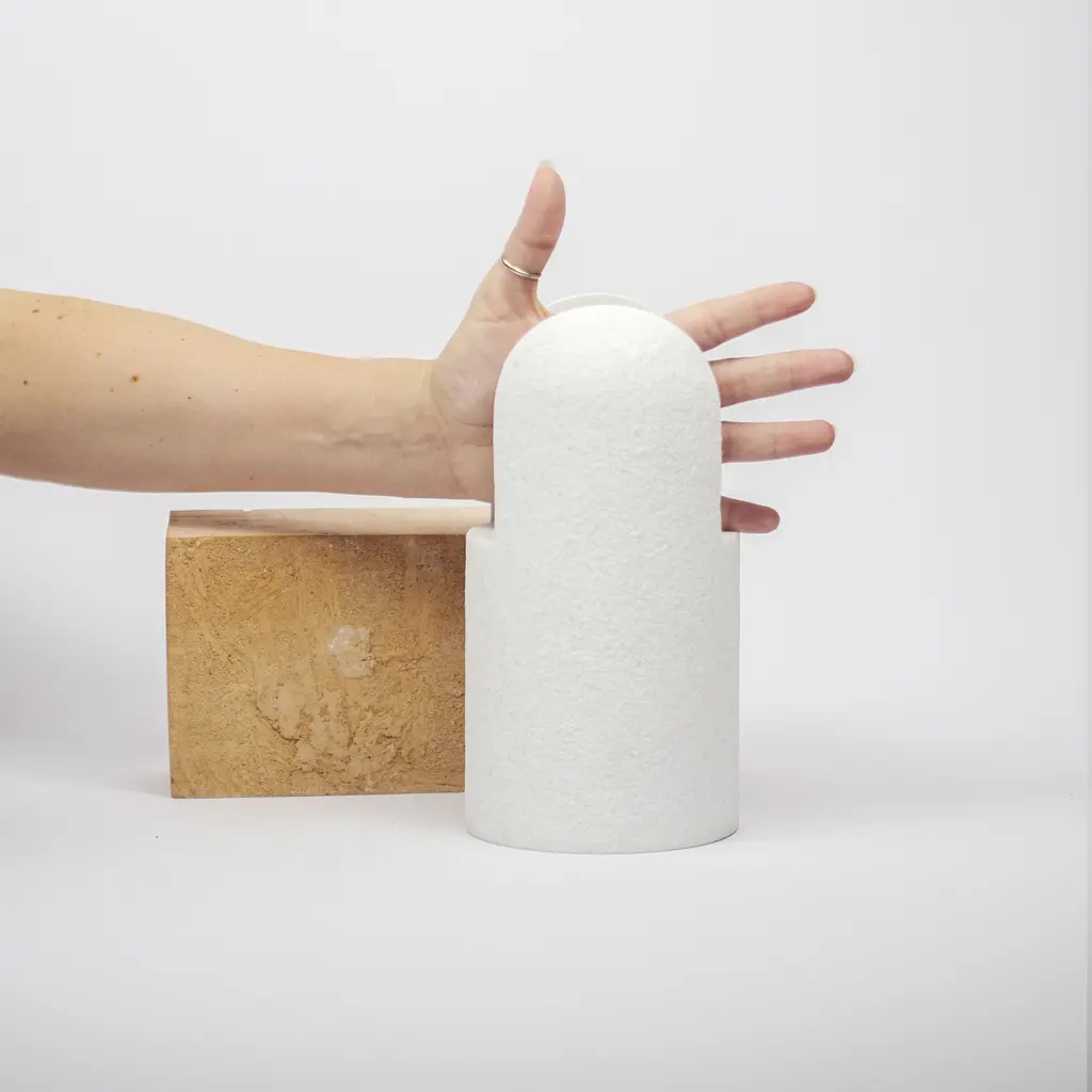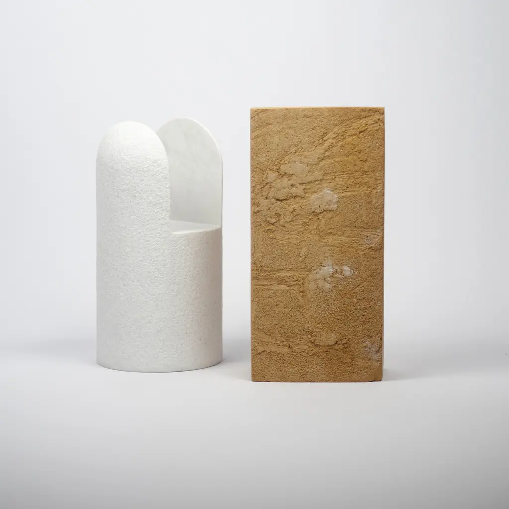 The refinement of marble meets the rugged warmth of terracotta in the Soprasotto collection from Gumdesign. An elegant tribute to ancient history and traditional crafting techniques, the objects feature hand-hammered white Carrara marble and artisan terracotta elements. Both components have a tactile surface that creates a play between textures. While one product features a rounded, bowl-like form with the terracotta block acting as a lid, the other has a cylindrical shape and fits into the terracotta base. Handmade, these sculptural objects are one of a kind and provide a perfect solution to create a stylish centerpiece in a room.