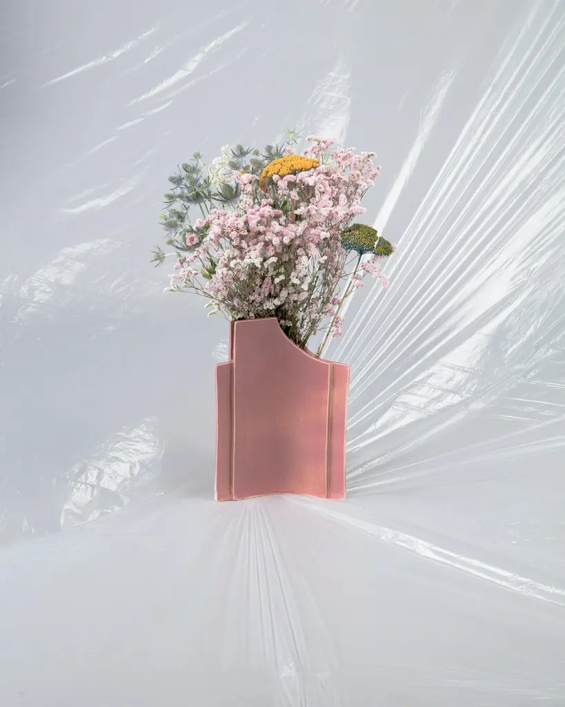 Soviet vase by Daniel NikolovskiDimensions: W 20 x D 20 x H 28 cmMaterial: Glazed CeramicPaying homage to Soviet Architecture, more specifically a catholic church in the city of Skopje designed by Blagoja Mickovski-Bajo, this object seems as if it is almost a maquette model of a building.Handmade by the designer, this glazed ceramic object is consisted of three curved walls, jointed with vertical pillars, evoking a compositional seriousness of a scred monument.Daniel Nikolovski (1992) is a Macedonian-born interior and furniture designer, currently living and working in Milan, Italy. His work is narrative-driven and is characterised by the use of sculptural geometries, altering proportions, expressed through rich range of materials such as: steel, resin, tortoiseshell acetate, boldly-patterned woods and fabrics used in the fashion industry.An alumni of Istituto Europeo di Design (BA) - Milan and a graduate of the Royal College of Art (MA) - London, some of his past work experiences include: Creative Direction and Design for the furniture brand KABINET, Verona (2019), Set Design for the exhibition Designing Craft / Crafting Design, Vienna (2017), Interior Design for NCDA, Hong Kong (2015).Throughout his career, he has presented his work at Salone del Mobile, FIAC (Paris), Paris Design Week, Offsite Online (NY) and Vienna Design Week. Daniel’s work has been published in Elle Decoration, Marie Claire Maison, AD and The New York Times.