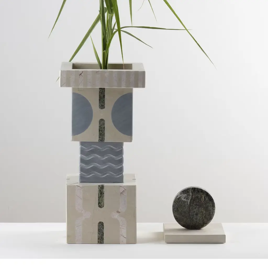 Spadillo stands as an exquisite vase crafted from multicolored marble employing the intricate inlay technique. Fashioned from a selection of premium materials including Bianco Fenice, Bardiglio Imperiale, Pietra Pece, Rosalia, and Green Forrest, its vibrant hues and rich textures showcase the artistry and complexity of its construction.