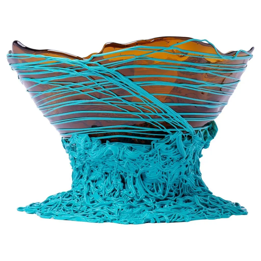 Stunningly shimmering in its vivacious yellow color inspired by the natural shades of homemade pasta, this extraordinary vase is a tribute to Italian cuisine. Deliciously mouth-watering, it is entirely crafted of resin shaped as entangled spaghetti. This iconic design belongs to the Fish Design Collection by Gaetano Pesce.