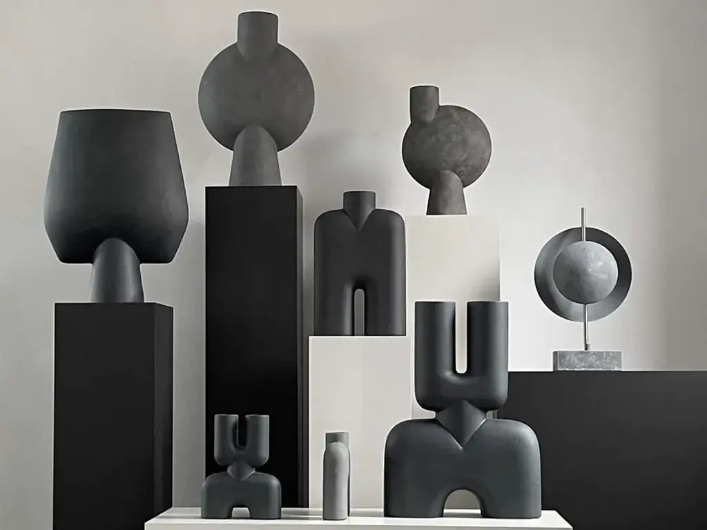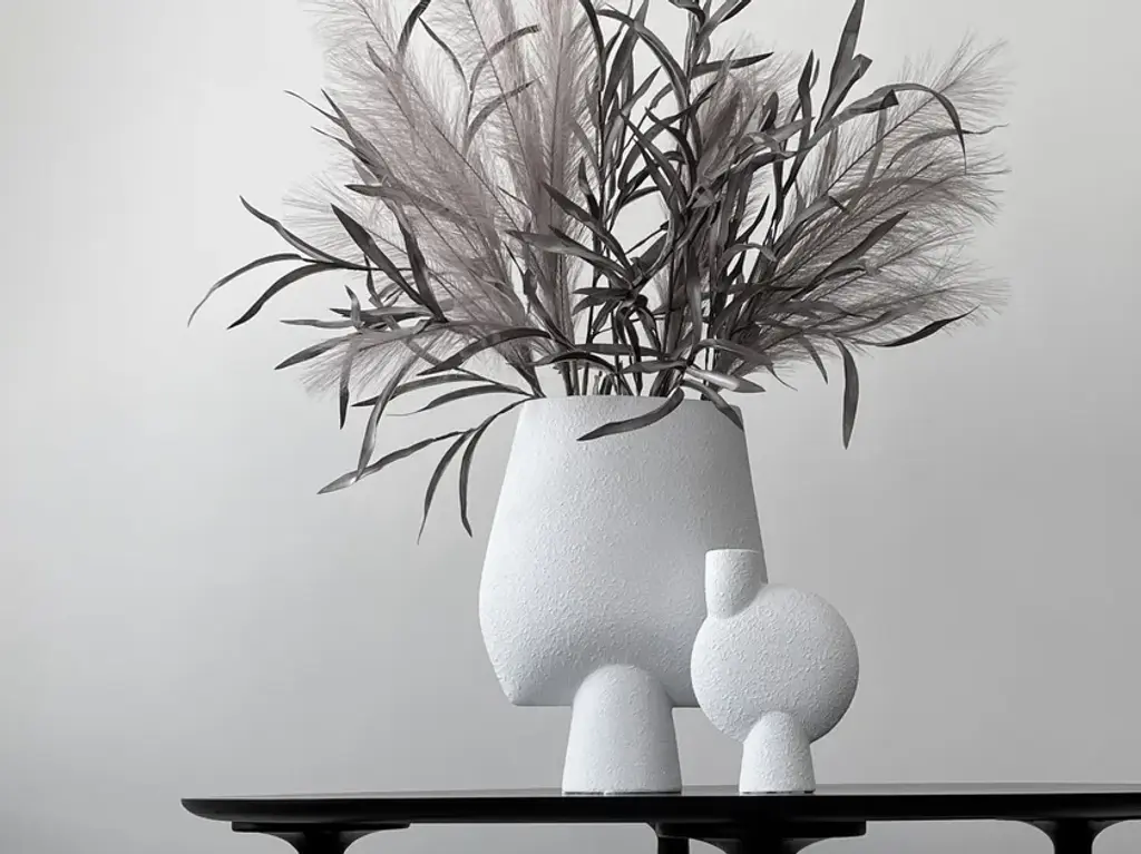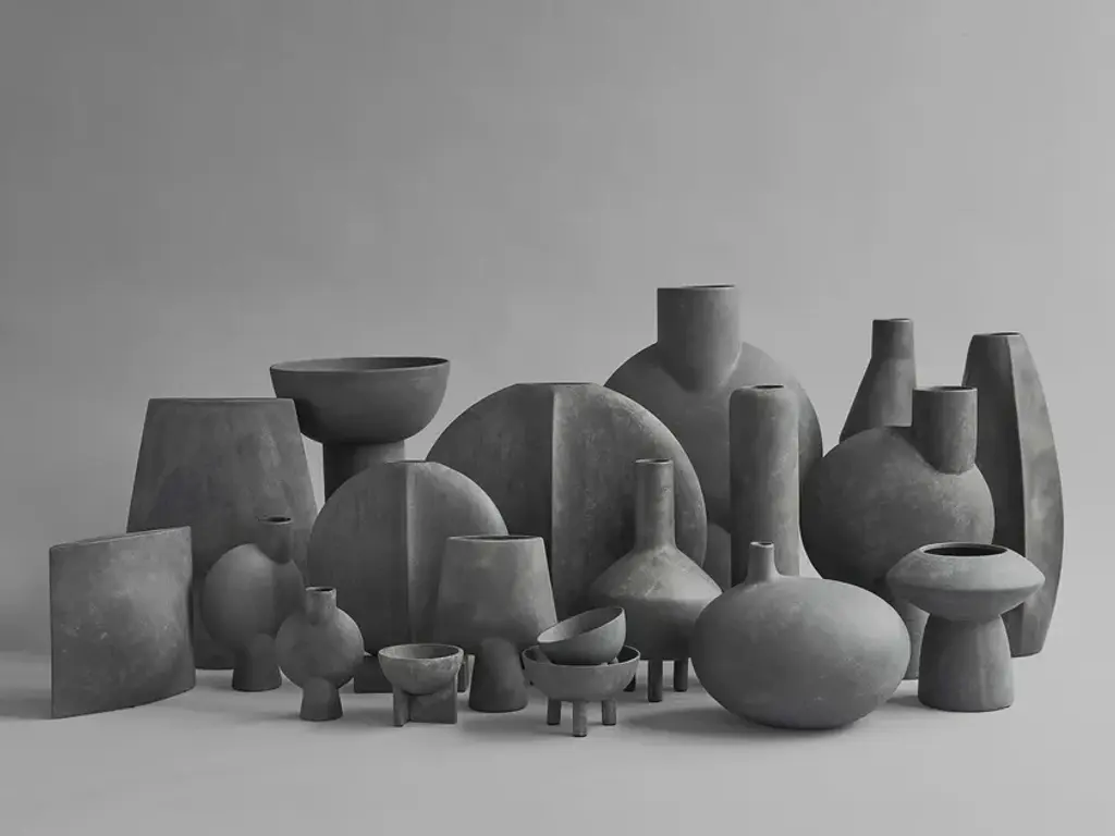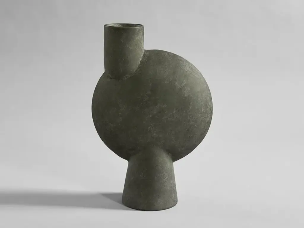 The SPHERE collection has become synonymous with the visual language and the signature series of 101 Copenhagen. The series is a family of unique silhouettes and textures gathering in a decorative and sculptural manner. Elegantly sculpted, each vase is finished with an intricate ornate detailing.Inspired by ancient Chinese vases, a palette of faded earth tones is characteristic of the SPHERE collection which was developed in close collaboration with highly skilled ceramists, ensuring the precise contrast between the smooth shapes and sharp edges. As it is a hand glazed natural product, the colours may vary slightly and while it is not 100% waterproof, a bag for fresh flowers is included.