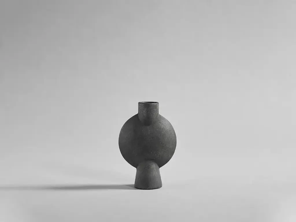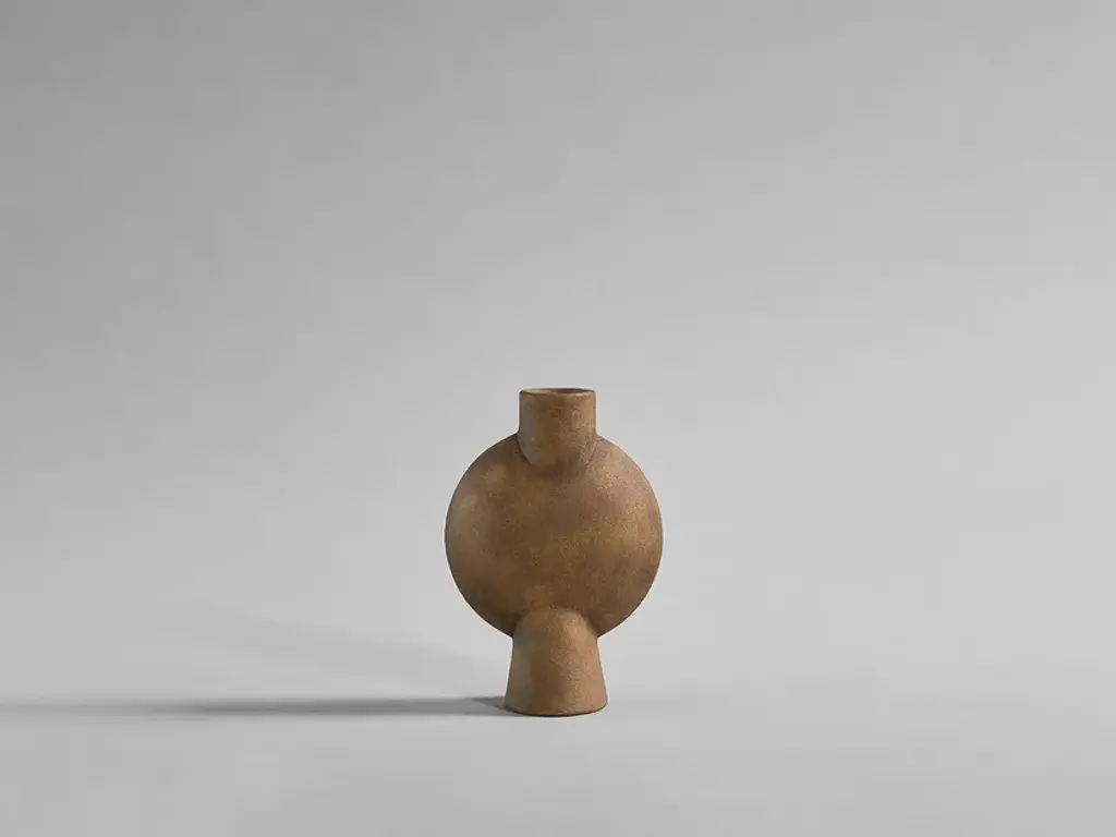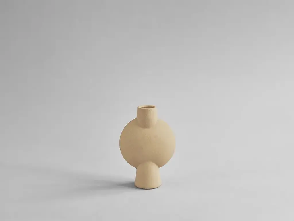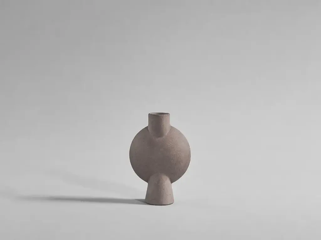 Sphere Vase Bubl is a ceramic vase.The SPHERE collection has become synonymous with the visual language and the signature series of 101 Copenhagen. The series is a family of unique silhouettes and textures gathering in a decorative and sculptural manner. Elegantly sculpted, each vase is finished with an intricate ornate detailing.Inspired by ancient Chinese vases, a palette of faded earth tones is characteristic of the SPHERE collection which was developed in close collaboration with highly skilled ceramists, ensuring the precise contrast between the smooth shapes and sharp edges. As it is a hand glazed natural product, the colours may vary slightly and while it is not 100% waterproof, a bag for fresh flowers is included.