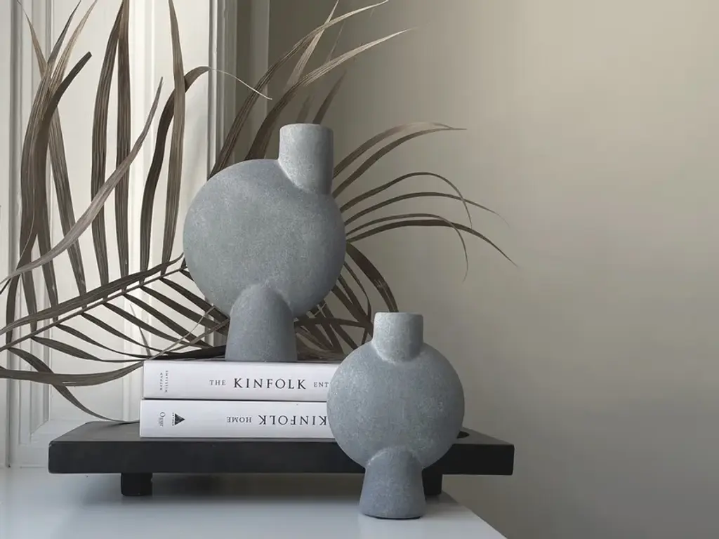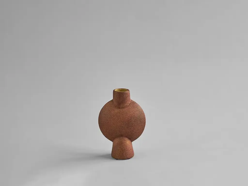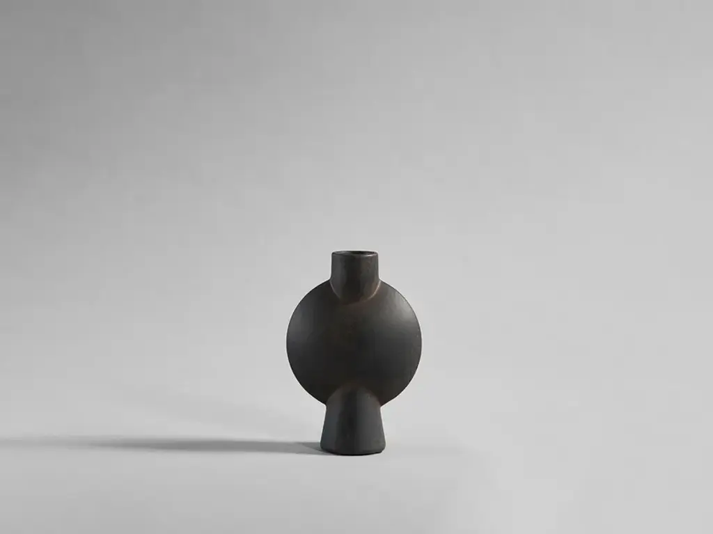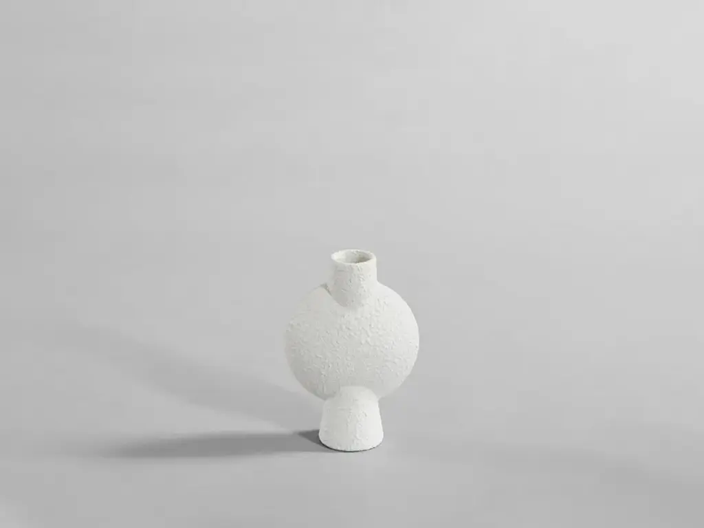 Sphere Vase Bubl is a ceramic vase.The SPHERE collection has become synonymous with the visual language and the signature series of 101 Copenhagen. The series is a family of unique silhouettes and textures gathering in a decorative and sculptural manner. Elegantly sculpted, each vase is finished with an intricate ornate detailing.Inspired by ancient Chinese vases, a palette of faded earth tones is characteristic of the SPHERE collection which was developed in close collaboration with highly skilled ceramists, ensuring the precise contrast between the smooth shapes and sharp edges. As it is a hand glazed natural product, the colours may vary slightly and while it is not 100% waterproof, a bag for fresh flowers is included.