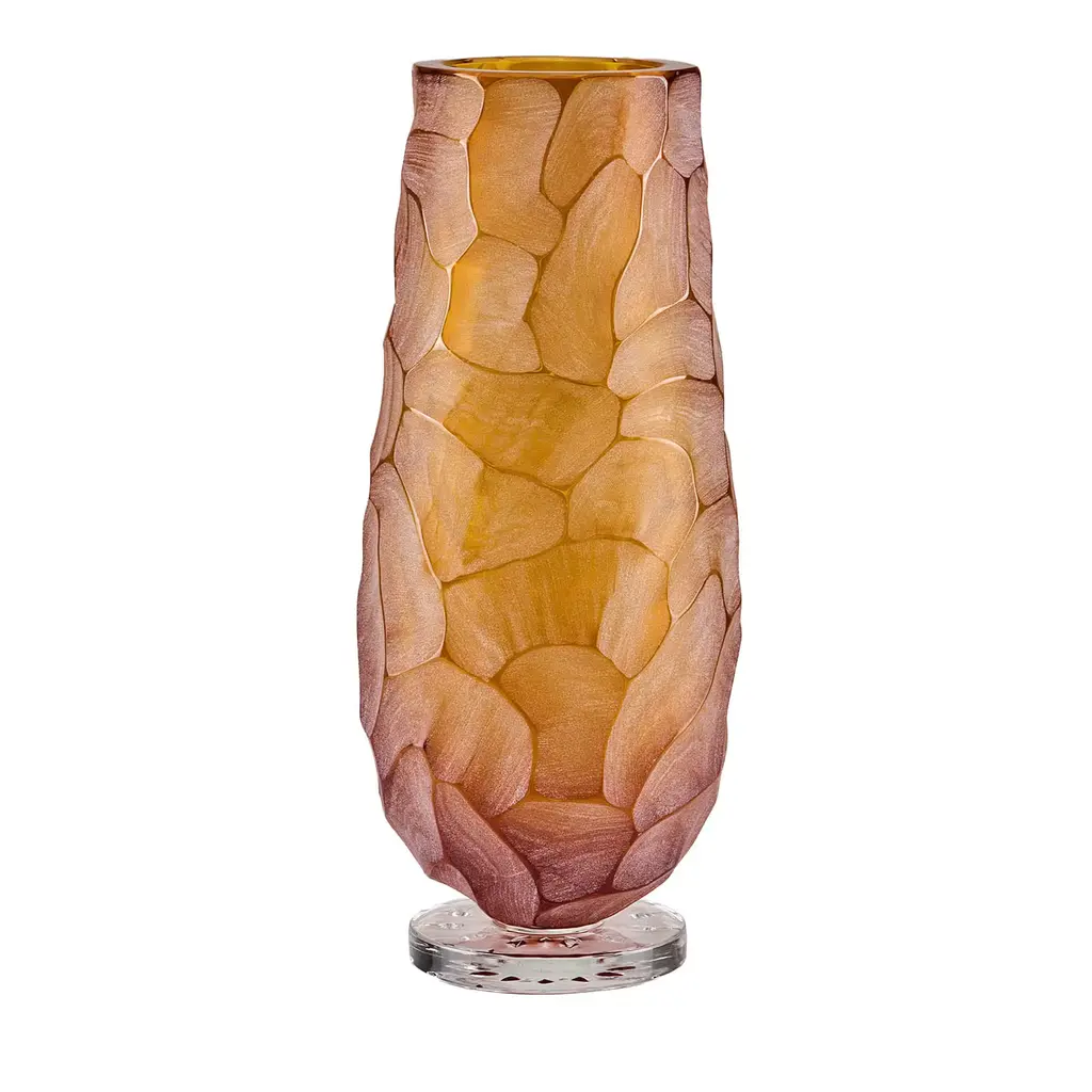 A romantic and elegant piece of decor that will enrich a living room or entryway, particularly in a classic or traditional decor, this vase was crafted of 24%-lead crystal in an alluring spherical shape that makes it ideal for low and colorful floral compositions. Its standout element is the charming decoration in the shape of a garland of lilies etched using the traditional technique of the wheel.