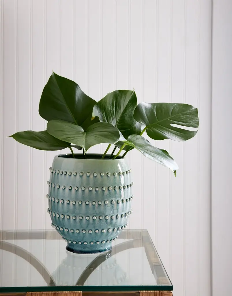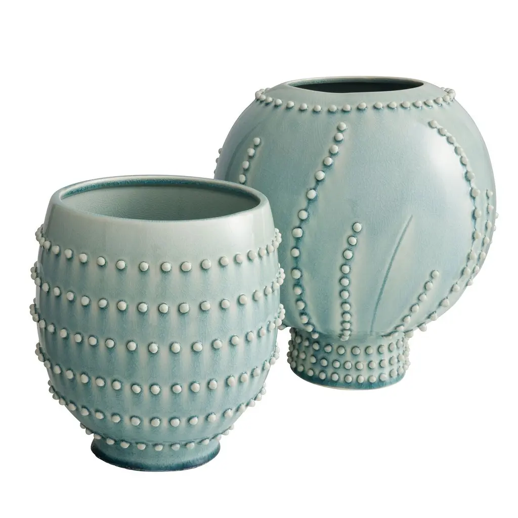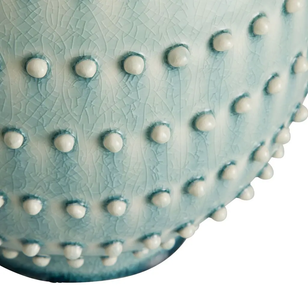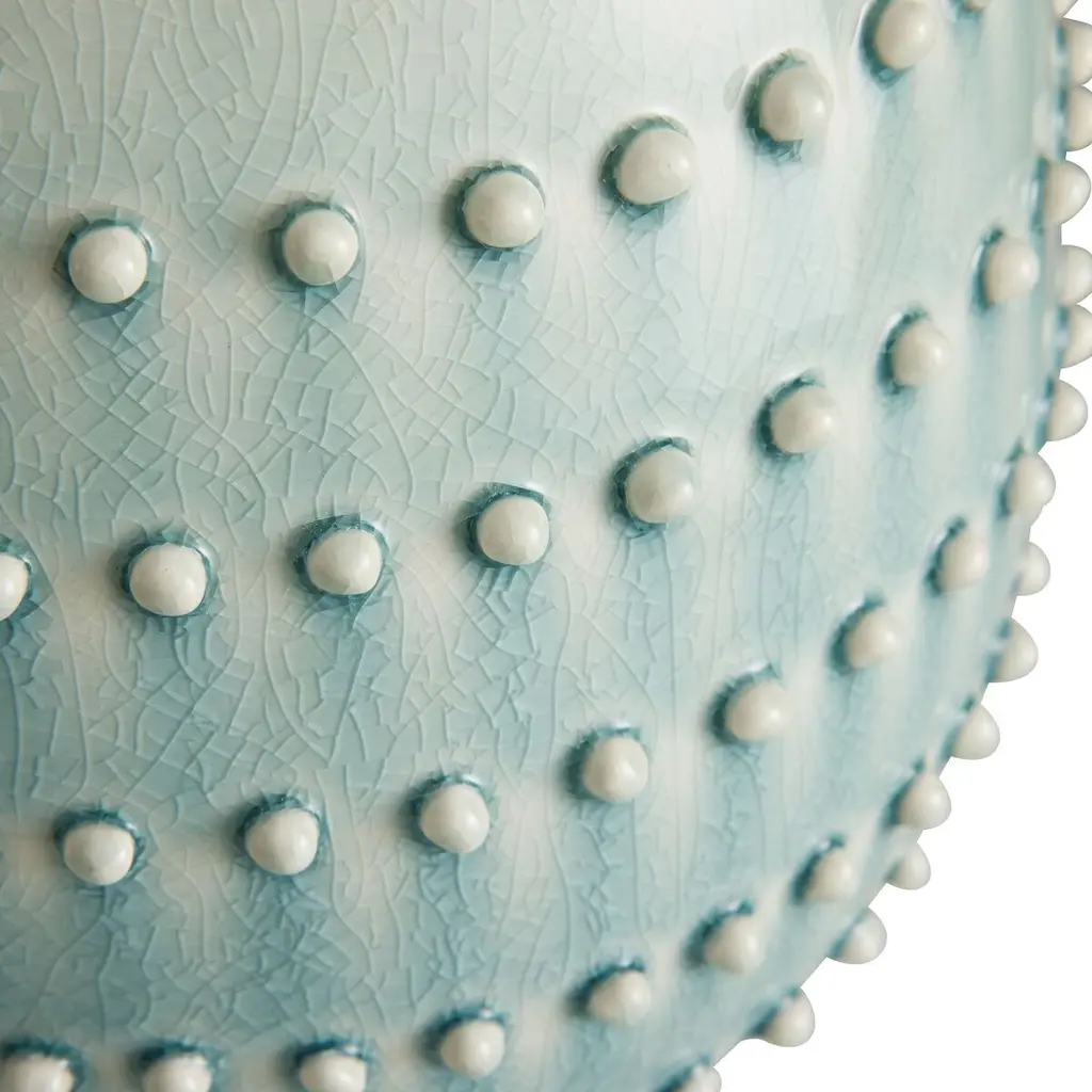 Reminiscent of classic hobnail glassware, this ceramic vase is adorned with scores of hand-applied beads. The crackled celadon finish contributes to the time-honored elegance.