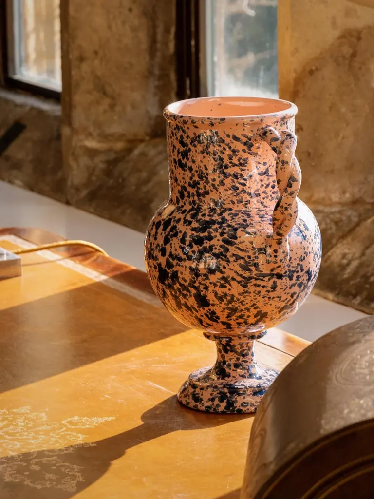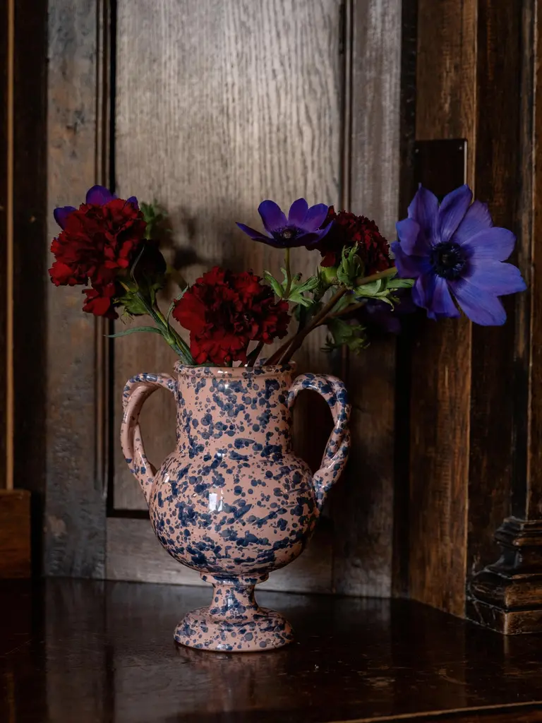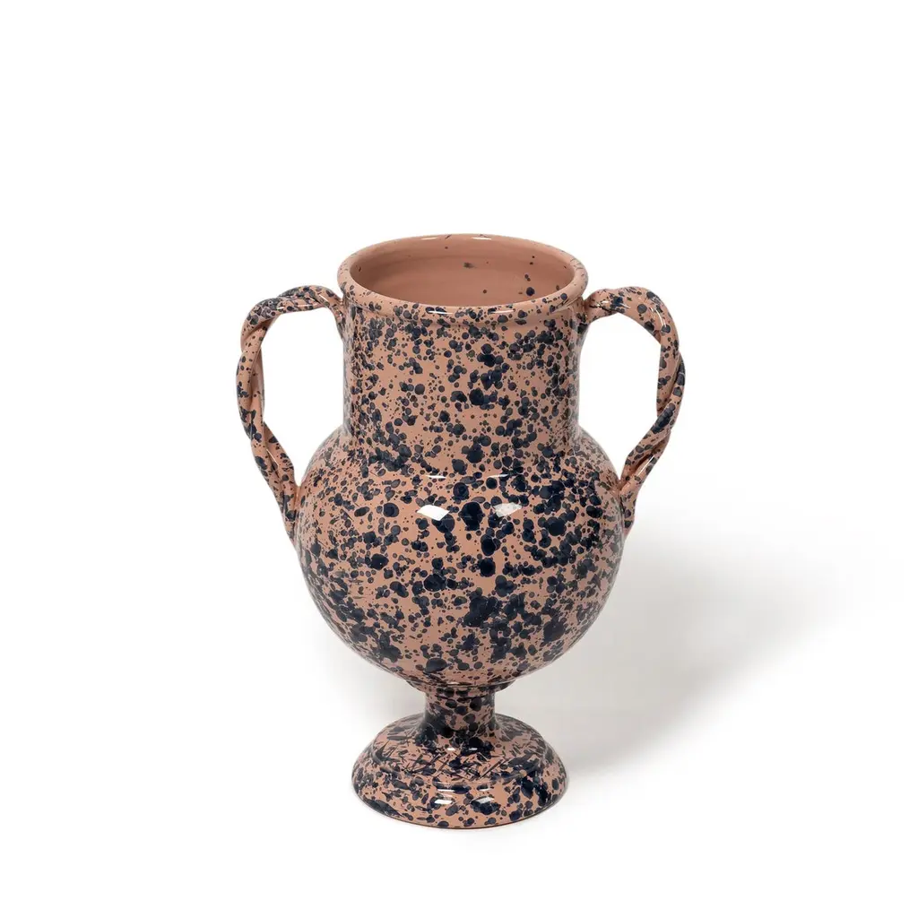 Splatter Vase, Ceramic, Greek Urn Inspired, Large, Pink And Blue