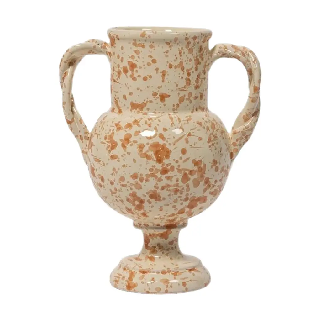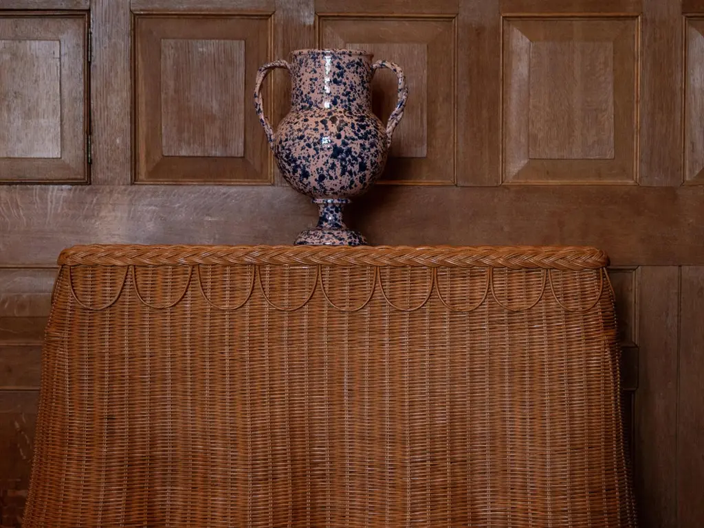 A standout centrepiece, the Verona vase is handmade in Italy. Our design comes in three colourways: pink & blue, tan & ivory, and antique green.Height: 30cmHeight: 12'6Founded by fashion journalist Louise Roe, Sharland England is a celebration of all things nostalgic. Elegant wicker, antique chairs & romantic, pleated cushions - every item is thoughtfully handmade. We believe in slow, meaningful design to create beautiful items that last.