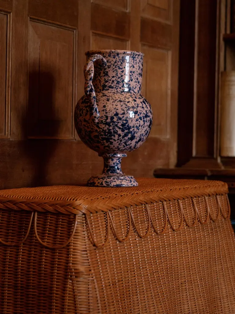 A standout centrepiece, the Verona vase is handmade in Italy. Our design comes in three colourways: pink & blue, tan & ivory, and antique green.Height: 20cmHeight: 7.8'Founded by fashion journalist Louise Roe, Sharland England is a celebration of all things nostalgic. Elegant wicker, antique chairs & romantic, pleated cushions - every item is thoughtfully handmade. We believe in slow, meaningful design to create beautiful items that last.