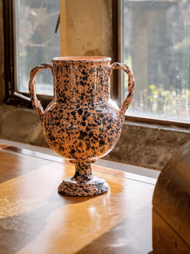 Splatter Vase, Ceramic, Greek Urn Inspired, Pink And Blue, Regular