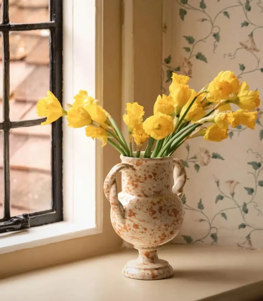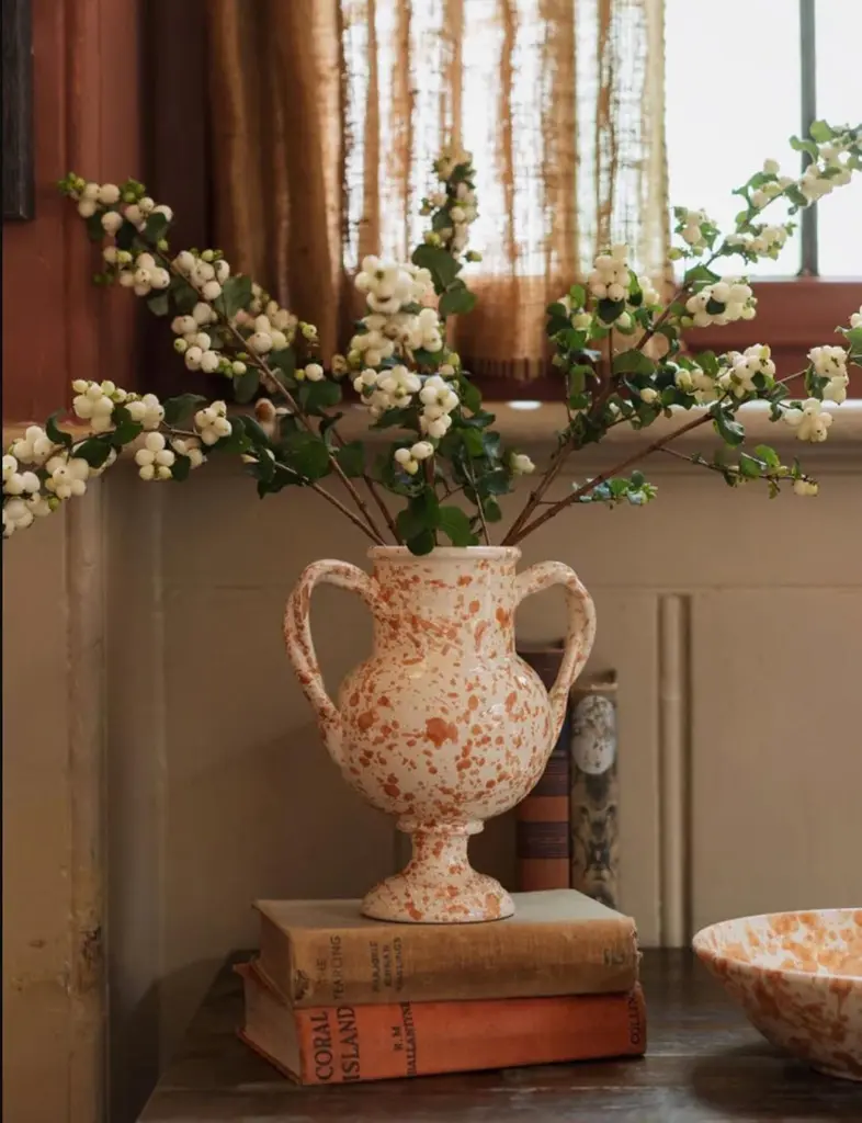 Splatter Vase, Regular, Ceramic, Greek Urn Inspired, Tan & Ivory