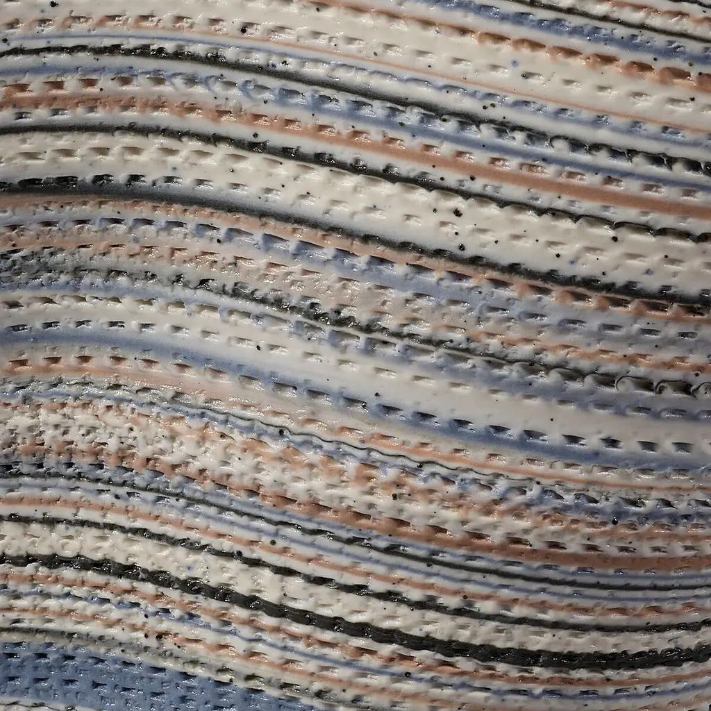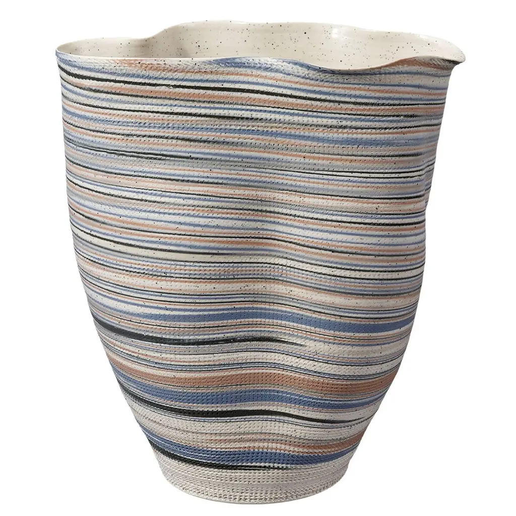 Horizontal stripes are hand-painted onto the graceful curves of this gently textured porcelain vessel. The palette is inspired by the serene beauty of desert landscapes. The result is a casually elegant accent that feels perfectly at home in any warm and welcoming interior. It is lovely enough to display on its own, yet versatile enough to use with your favorite fresh or faux fillers.